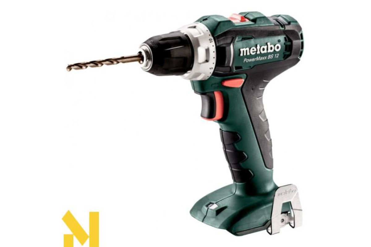 Metabo PowerMaxx BS 12 BL Q - компактний безщітковий шуруповерт з обертовим моментом в 45 Нм, система швидкого знімання патрона Quick, 2-х швидкісний редуктор, регулювання обертів, гальмо вибігання, реверс, фіксація шпинделя, малу вагу.