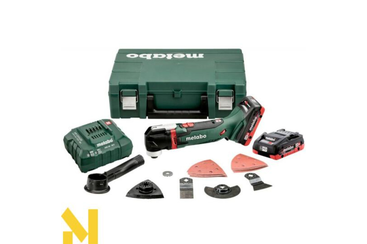 Акумуляторний мультитул Metabo MT 18 LTX Compact -акумуляторний універсальний інструмент високої продуктивності, порівнянної з мережевим аналогом. Мультитул незамінний при внутрішніх оздоблювальних роботах: пилянні, шліфуванні, зачищенні, розпилюванні різних матеріалів. Швидкість виконання робіт і потужність досягаються завдяки великому куту коливань, рівному 3,2 °, електроніці VTC і збереженню постійної швидкості навіть під навантаженням. Дана модель поставляється в протиударному кейсі MetaLoc з двома акумуляторними блоками LiHD ємністю 4,0 Ач, а також широким набором пильних полотен і шліфувальних аркушів для виконання різних робіт.