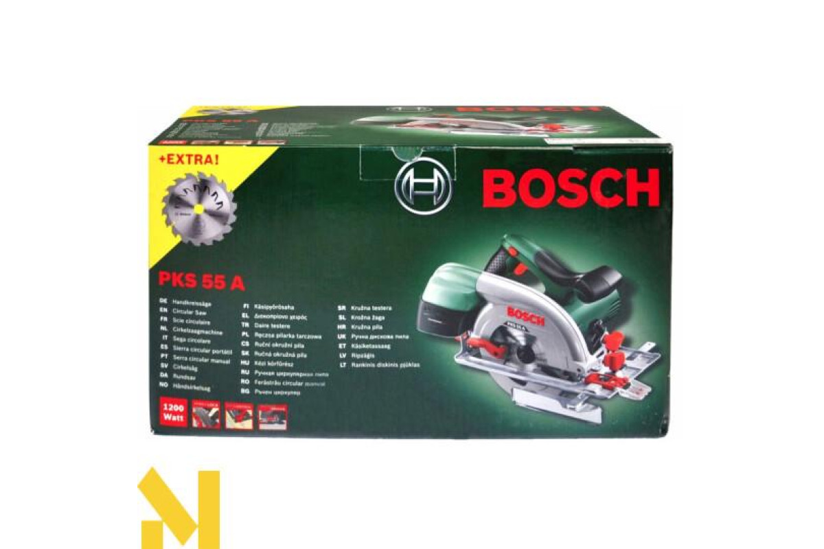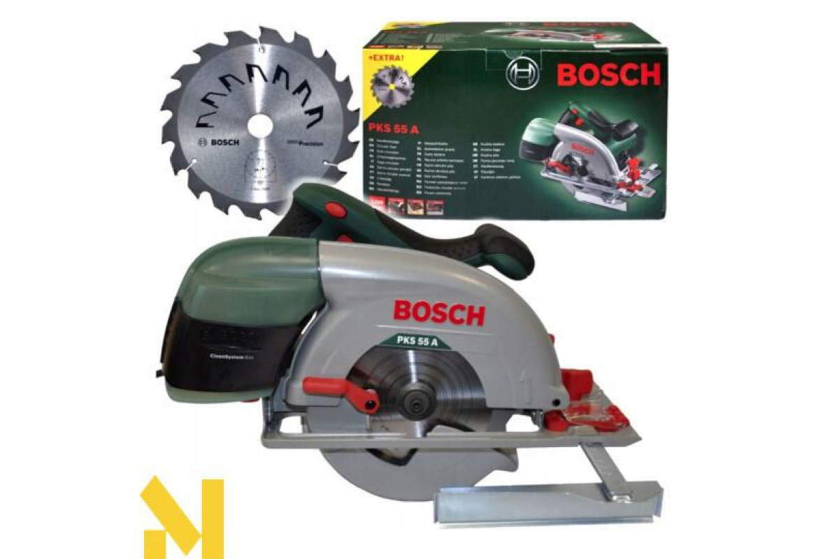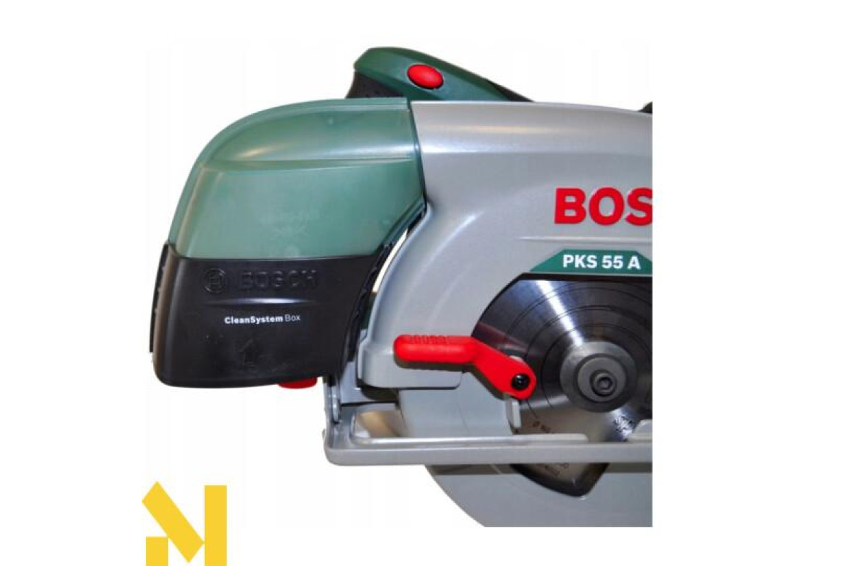 Дискова пилка Bosch PKS 55 A допоможе якісно здійснити повздовжний і косий розпил. Їй під силу впоратися з ДСП, м’якими породами деревини, МФД, оргсклом та алюмінієм. Ця модель характеризується хорошим контролем та точністю роботи. Завдяки новітнім доповненням CleanSystem і CutControl працювати технікою дуже просто. Пилозбірник CleanSystem повністю очищає робочу зону від стружки і тирси. Контейнер зі збору стружки під’єднується до гніздадля пилососа. За рахунок обертання диску пили, утворюється потік повітря, який спрямовує стружку і пил у бак.