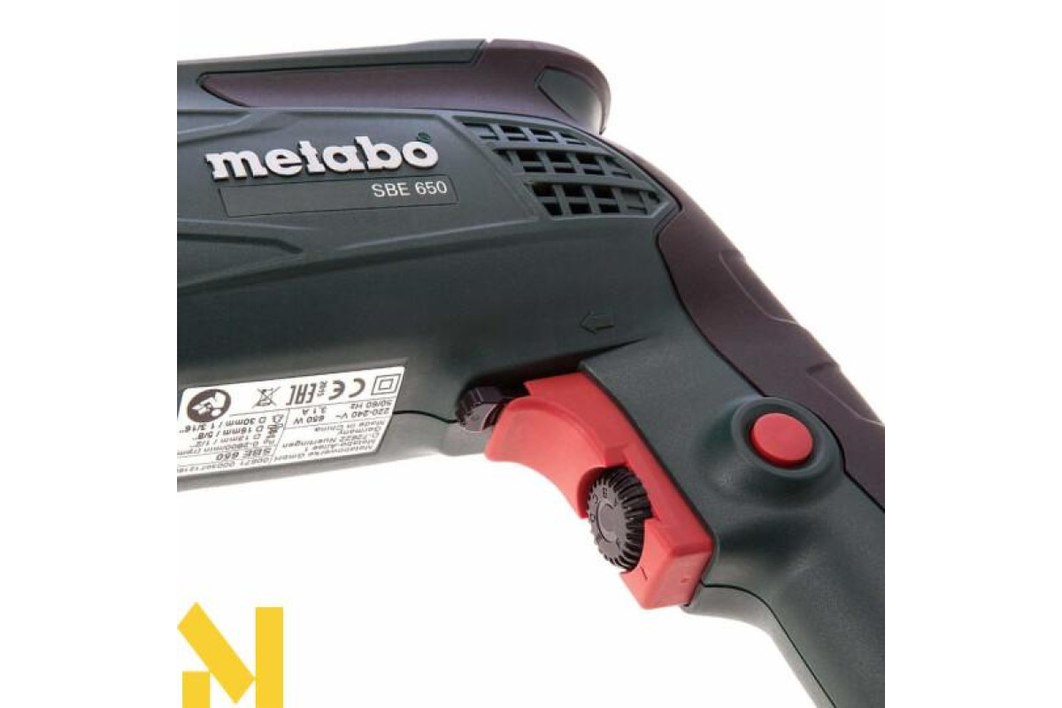 - Реверс, в поєднанні з відмінною ергономікою дозволяє використовувати Metabo SBE 650 для нескладних робіт про загвинчування саморізів.