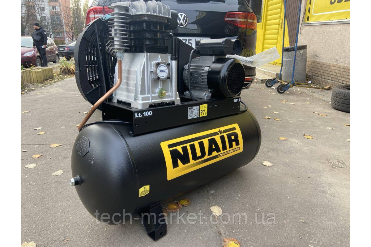 Масляний компресор з ремінним приводом NUAIR B3800B/100 CM3 - дуже практична, зручна і економічна модель компресора. Основними особливостями електричного компресора NUAIR B3800B/100 CM3 є наявність алюмінієвих головок і блоку циліндрів з великими охолоджуючими ребрами, які сприяють більш швидкому охолодженню, а також гільза виготовлена з високоякісного чавуну. Збільшений масляний картер забезпечує високоефективну роботу. Пластини клапанів із спеціальної зносостійкої нержавіючої сталі для максимальної продуктивності протягом всього терміну експлуатації. Компресор має невеликі габарити і тому є досить компактним і мобільним, а зручна ручка допоможе в транспортуванні. Компресор NUAIR B3800B/100 CM3 обладнаний регулятором тиску і манометром. Двигун компресора NUAIR B3800B/100 CM3 обладнаний примусовим повітряним охолодженням з захисним екраном, а також датчиком захисту від перегріву. Дана модель володіє наступними конструктивними особливостями такими як, великий масляний картер для кращої мастила, пластини клапанів виконані із спеціальної зносостійкої нержавіючої сталі, які служать для більш високої продуктивності. Динамічно збалансований маховик з лопатями, необхідний для кращого охолодження.