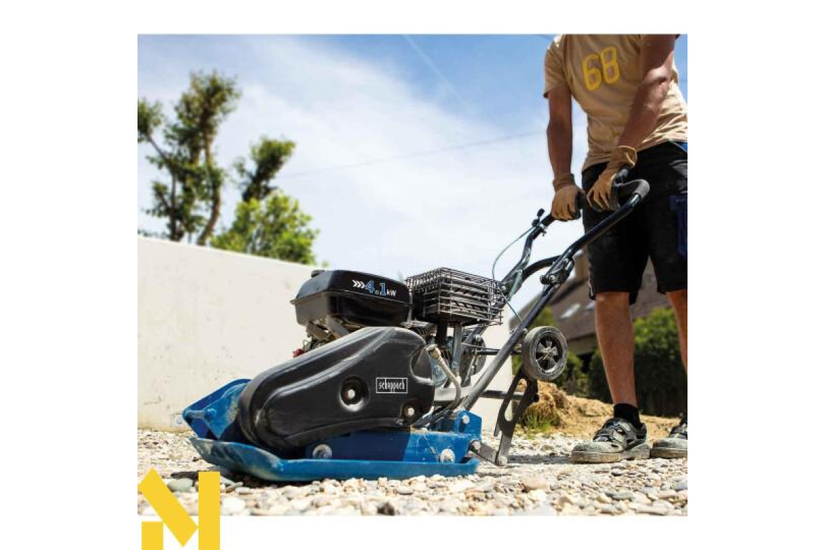 Віброплита HP2300s від Scheppach - ідеальне рішення для всіх робіт з ущільнення. Ця компактна та легка віброплита забезпечує відмінні результати ущільнення, завдяки чому всі ваші роботи по дому, в саду або на інших ділянках можна виконати швидко та легко. Завдяки потужному двигуну потужністю 5,6 к.с. вона ущільнює ґрунт на глибину до 35 см із силою удару 23 000 Н.