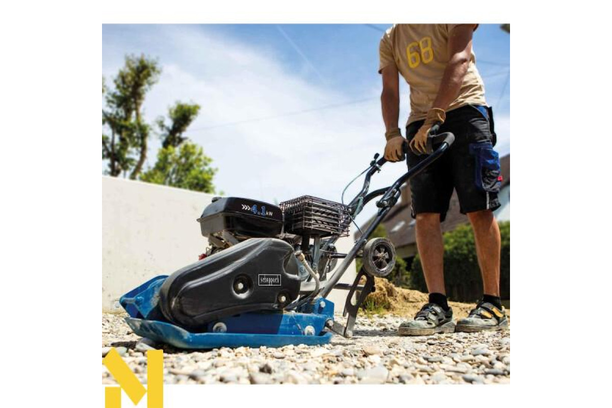 Гнучкість застосування: Чорний гумовий килимок, що постачається з віброплитою, ідеально підходить для укладання бруківки і робить цю віброплиту дуже гнучкою у використанні.