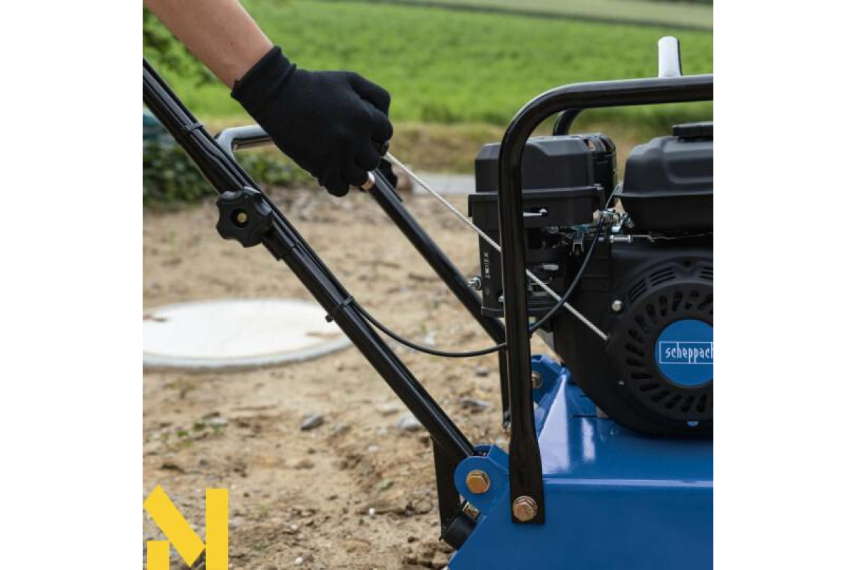 HP1800S від Scheppach – це компактна та легка віброплита, яка при цьому досягає чудових результатів ущільнення. Будь-яку роботу навколо будинку, на терасах, у саду чи перед будинком можна швидко та легко виконати за допомогою цього маневреного інструменту. Потужний бензиновий двигун потужністю 6,5 к.с. ущільнює з тиском 23 000 Н.