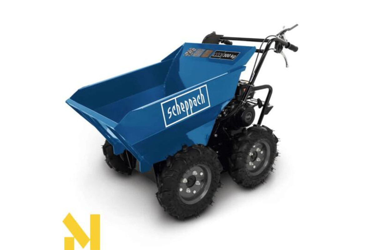 Самоскид Scheppach DP3000 – ідеальний інструмент для будівництва, лісового господарства, сільського господарства, садівництва та ландшафтного дизайну. Він може легко транспортувати ґрунт, гравій, каміння, щебінь та багато іншого. Завдяки надувним позашляховим шинам та повному приводу, DP3000 забезпечує достатнє зчеплення навіть на нерівній, складній місцевості, а також на слизьких, гладких або багнистих поверхнях. Напрямок руху, з трьома передачами вперед та однією передачею назад, зручно контролюється за допомогою ручки.