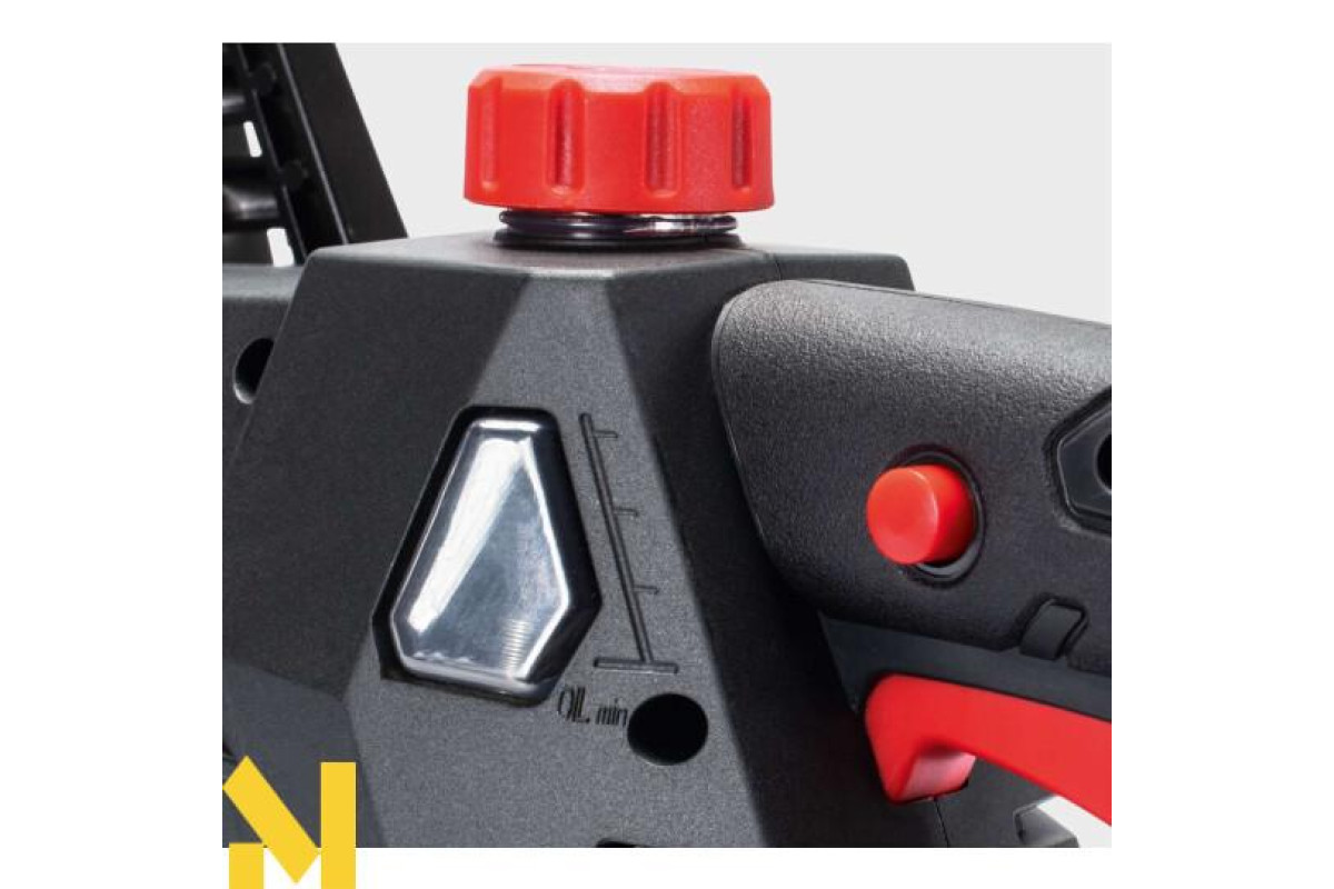 Завдяки електричному приводу ви не вдихаєте шкідливі гази під час пиляння. Ручка має розвантажувальний пристрій для подовжувального кабелю, що забезпечує його правильне кріплення та безперебійну роботу. Рівень оливи можна перевірити будь-коли через оглядове віконце, що робить перевірку особливо простою.