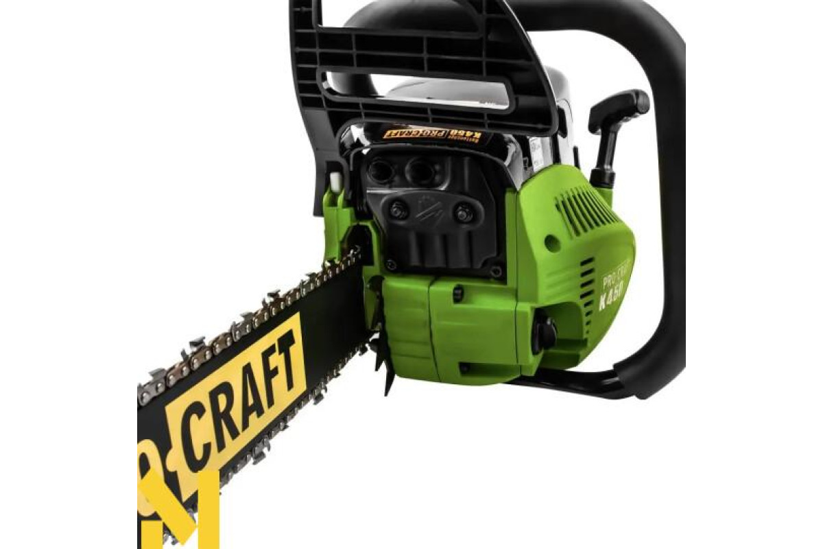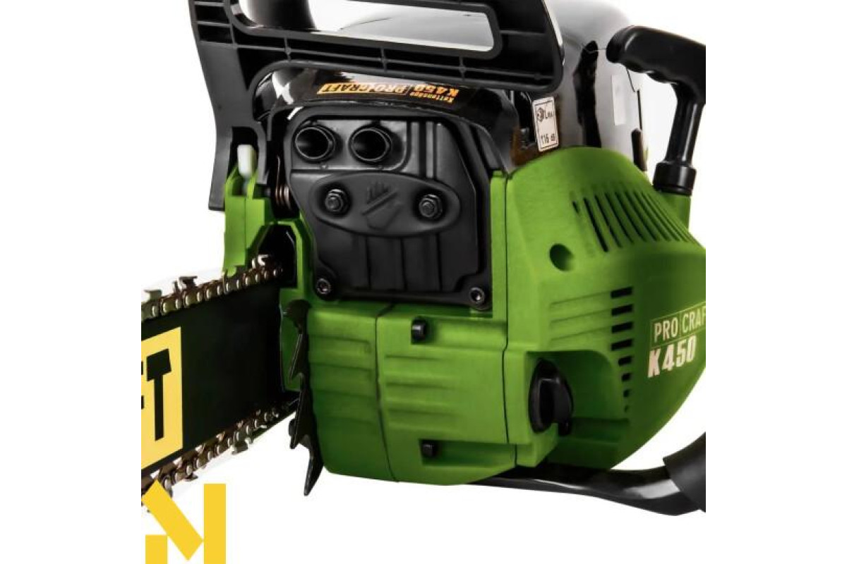 Серед численних якісних параметрів Procraft K450 можна вказати ще і комплектацію економічним, але потужним двигуном 52СС з повітряним охолодженням. Це дозволяє працювати з твердими породами дерев, спилюючи гілки або кронуючи зелені насадження. Термін експлуатації двигуна, як і бензопили, досить тривалий, що гарантує виробник.