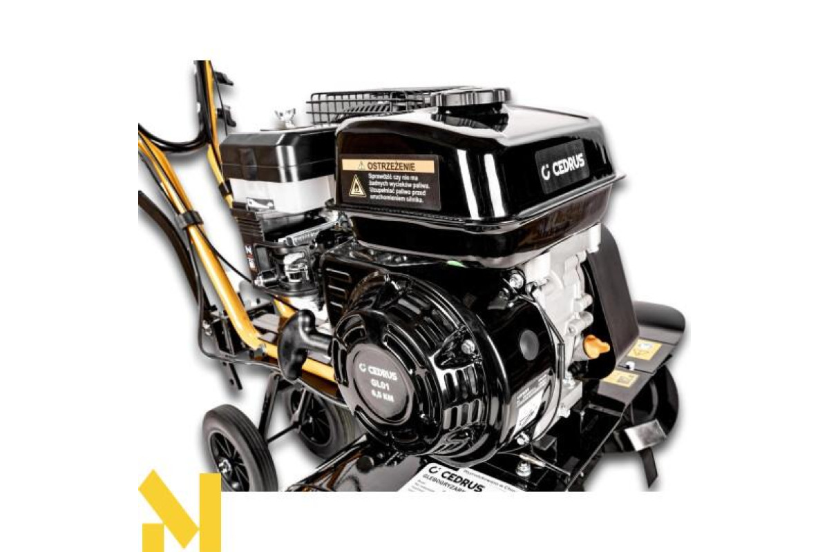 Мотокультиватор Cedrus GL01 (LC) з двигуном Loncin є ідеальною машиною для будь-якого користувача, якому потрібний універсальний пристрій. Надійний румпель з міцними ножами не тільки оброблятиме грунт, але й допомагатиме орати або копати картоплю з додатковими насадками. Крім того, регульована ширина робочої системи ротаційного культиватора дозволить використовувати ротаційний культиватор в міжрядах різної ширини.Універсальний поворотний культиватор оснащений потужним чотиритактним двигуном Loncin 6,5 к.с. з верхньою конструкцією OHV потужністю 196 см3. Ротаційний культиватор має робочі ножі з високоякісної сталі, що гарантує тривалу та безпроблемну експлуатацію борони Cedrus. Завдяки транспортним колесам у наборі, переміщення румпеля легко та без зусиль.