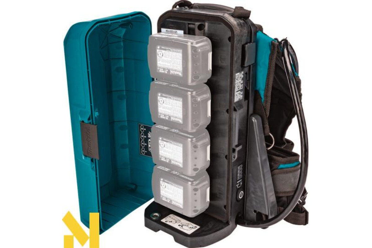 • Рюкзак поміщає чотири літій-іонні батареї, для збільшення часу роботи акумуляторного інструменту