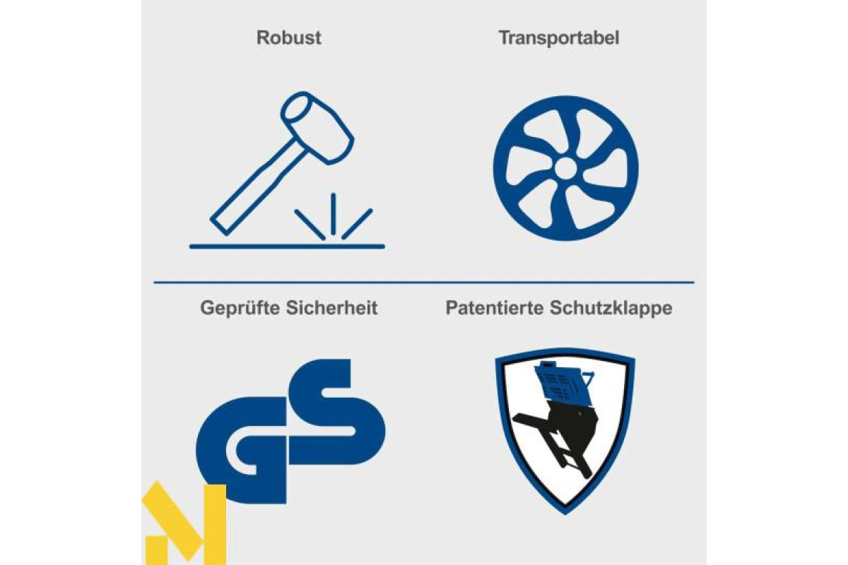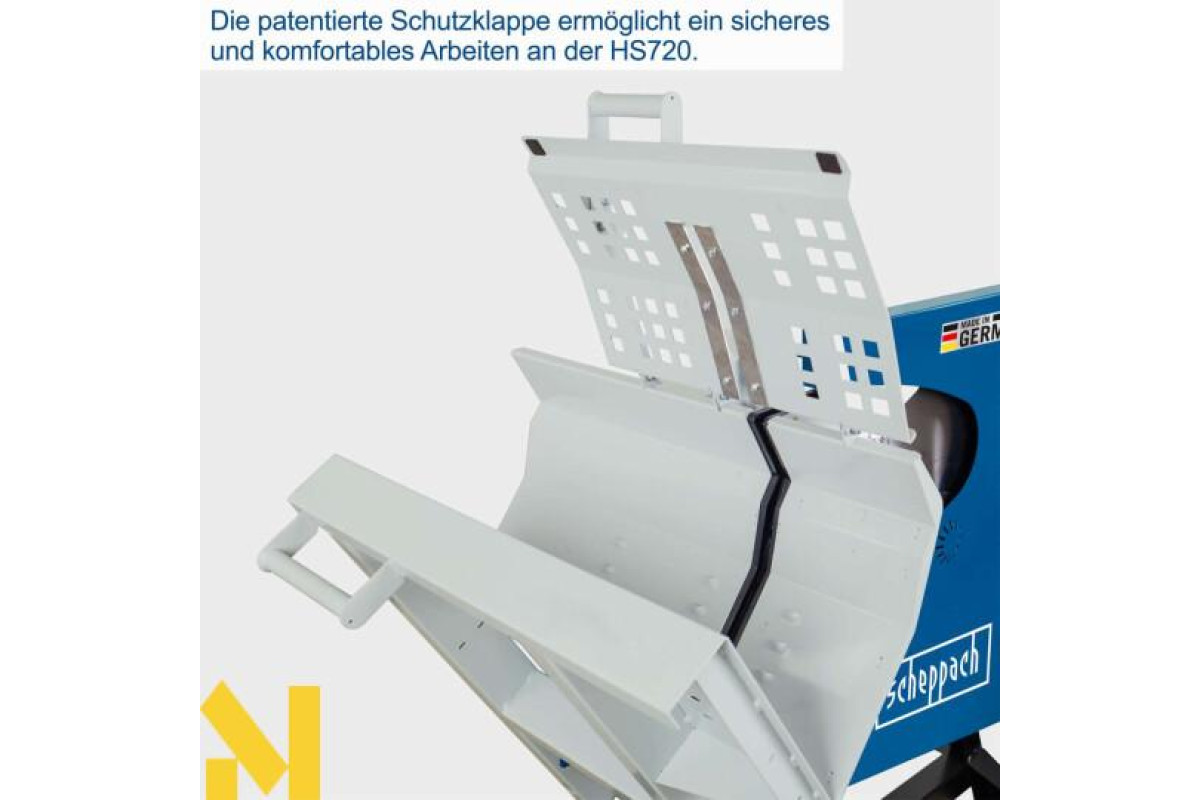 Дроворіз Scheppach HS720 з поворотним механізмом від Scheppach пропонує більшу безпеку, ефективність та комфорт, ніж інші дискові пилки з поворотним механізмом, що відповідає вимогам маркування «Зроблено в Німеччині». Висока продуктивність різання гарантована завдяки потужному двигуну. Міцна зварена сталева конструкція забезпечує тривалий термін служби. Жорсткість на кручення перевіряється за стандартизованою процедурою.