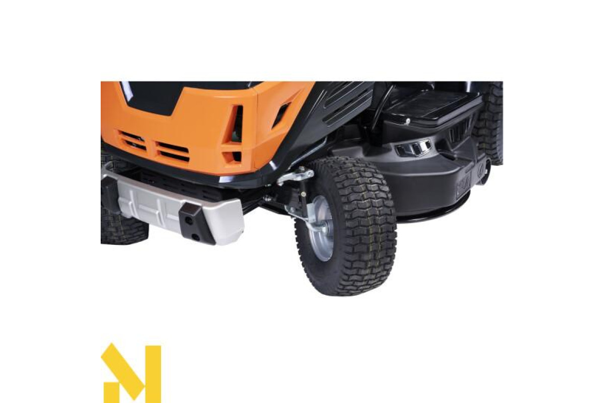 Широкі колеса мають спеціальний протектор, який не пошкоджує траву під час роботи.