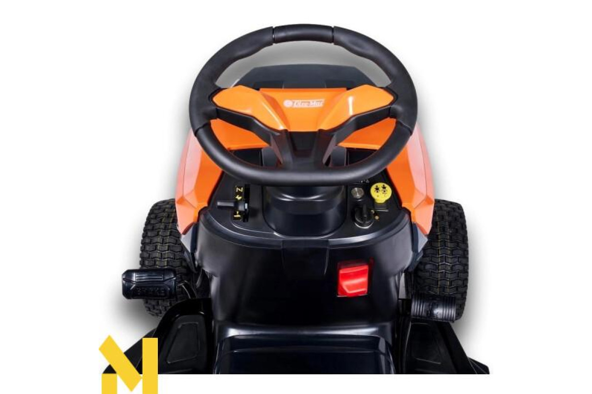 Гідростатична трансмісіяактивується натисканням педалі без необхідності знімати руки з керма. Посилені та екрановані підшипники та опора ріжучого ножа, розроблені для довговічності навіть за дуже інтенсивного використання. Система регулювання висоти зрізу управляється пружиною, яка дозволяє легко піднімати та опускати за допомогою важеля. Значно зменшений радіус повороту полегшує пересування рослин і декоративних кущів без непотрібних і клопітких маневрів заднім ходом або необхідності змінювати положення трактора.