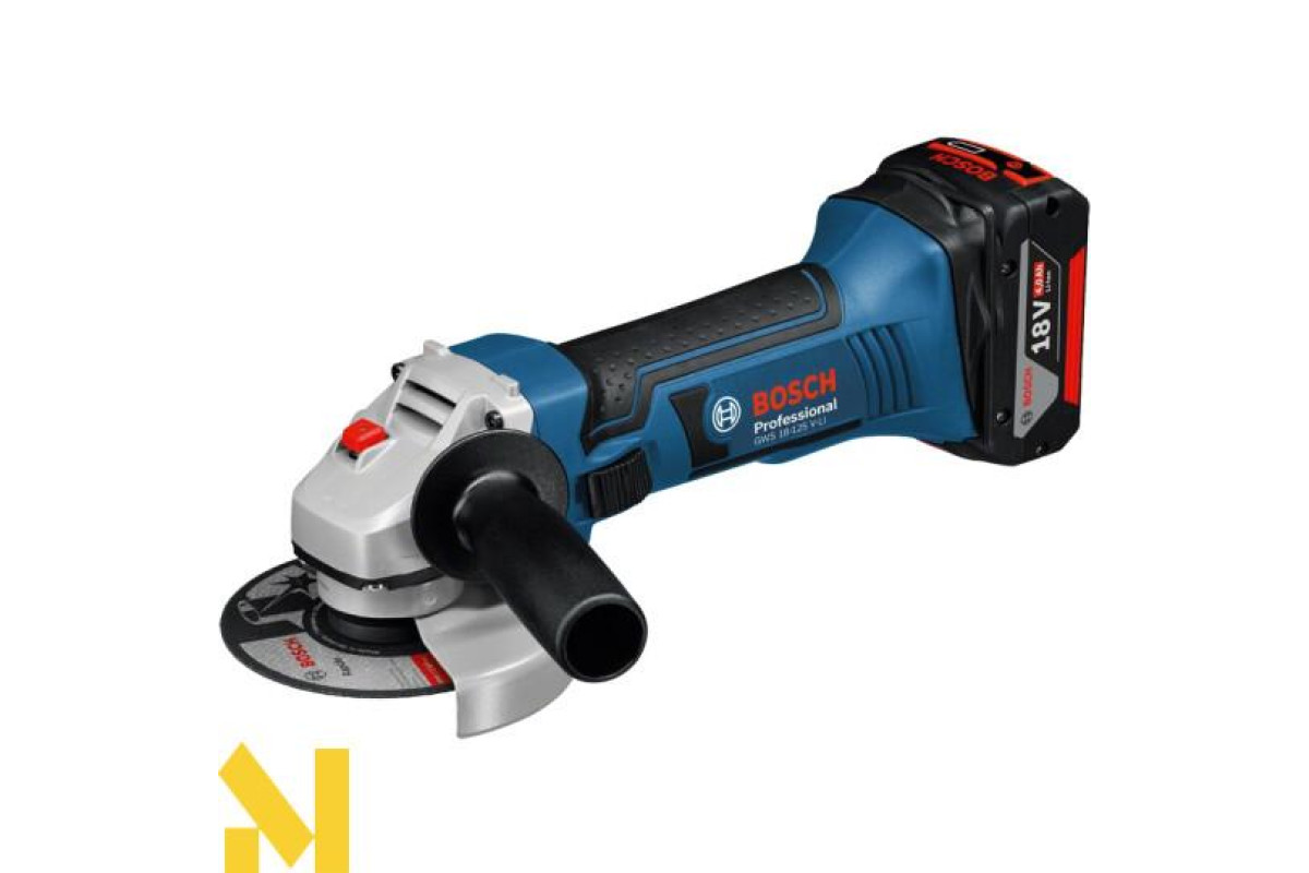Зачистити і відшліфувати поверхні, відрізати деталі невеликого діаметра без використання електрики допоможе Bosch GWS 18-125 V-LI. Працююча від літій-іонного 18 В акумулятора 4 А*год, робить до 10000 об/хв. Працює з відрізними і шліфкругами 125 мм з посадкою 22 мм. Постійно готові до роботи акумулятори, захищений від перевантаження двигун, що повертається корпус редуктора, легко встановлюється непроворачіваемий захисний кожух, блокування шпинделя і фіксація вимикача. Інструмент доставляється з акумулятором GBA 18V 4 Ah і зарядним пристроєм GAL 18V-40, з захисним кожухом, допоміжною рукояткою.