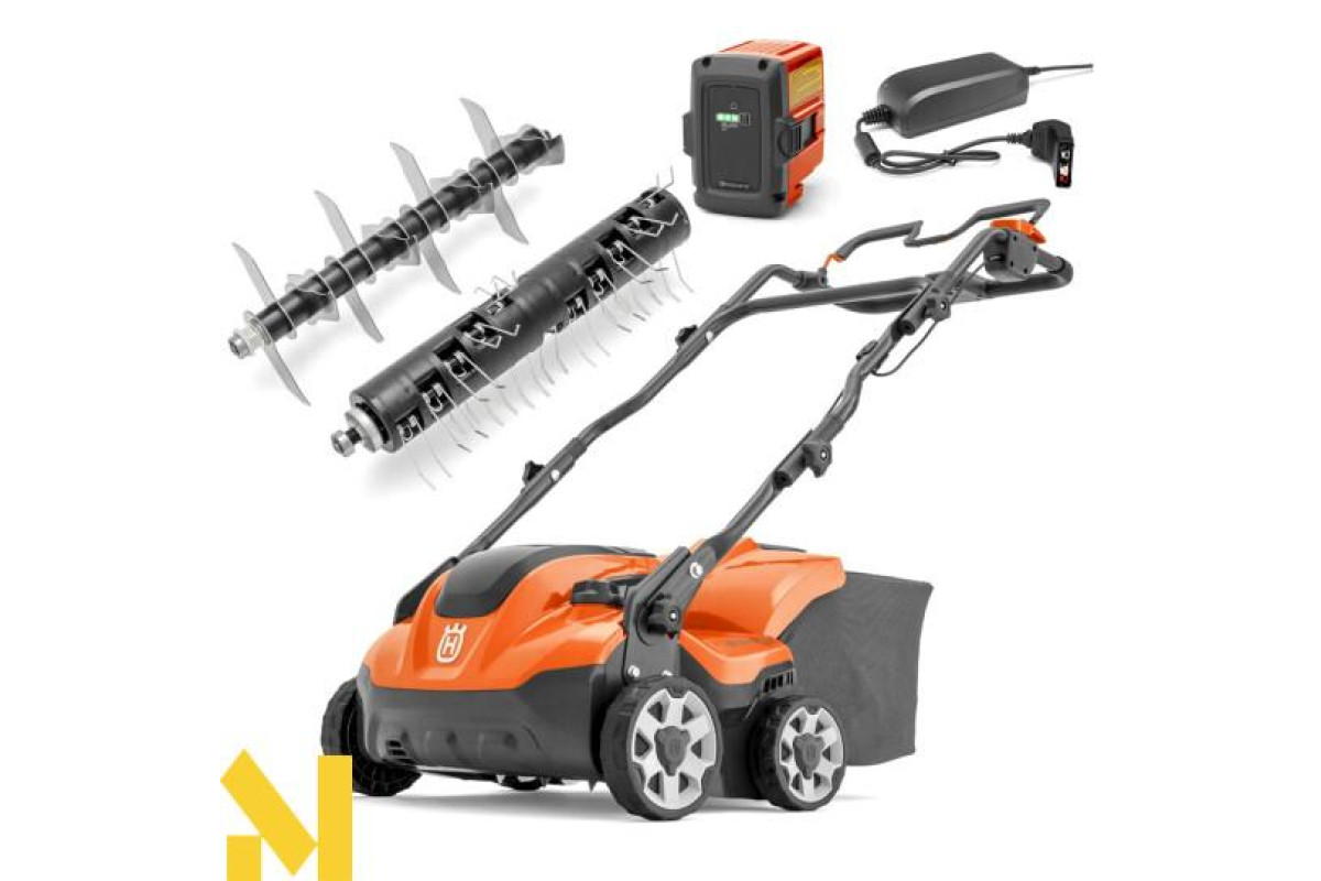 Легкий акумуляторний скарифікатор з функцією 2-в-1 та швидкою зміною лез. Легко регульована робоча глибина та потужний двигун ефективно видаляють з газону мох та суху траву. Робоча ширина 38 см та два відсіки для акумуляторів для збільшення часу роботи. Компактний дизайн та складна ручка полегшують транспортування та зберігання.