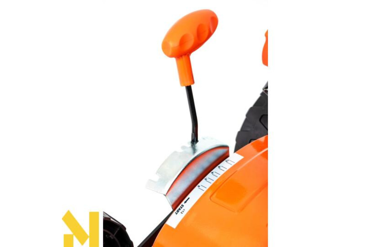 Обладнання працює на потужному двигуні OHV об'ємом 196 см3. Ширина захвату становить 38 см. Він також оснащений 40-літровим кошиком. Глибину аерації можна регулювати від -12 до 10 мм.