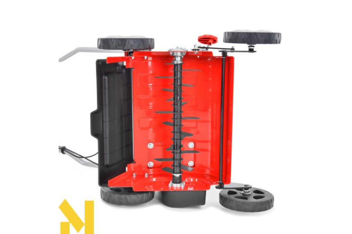 Вал з 26 пружинами видаляє мох і щільний дерен, що перешкоджає правильній циркуляції води, кисню і поживних речовин. Таку процедуру рекомендується проводити принаймні три рази за сезон, що забезпечить хорошу циркуляцію речовин в газоні.