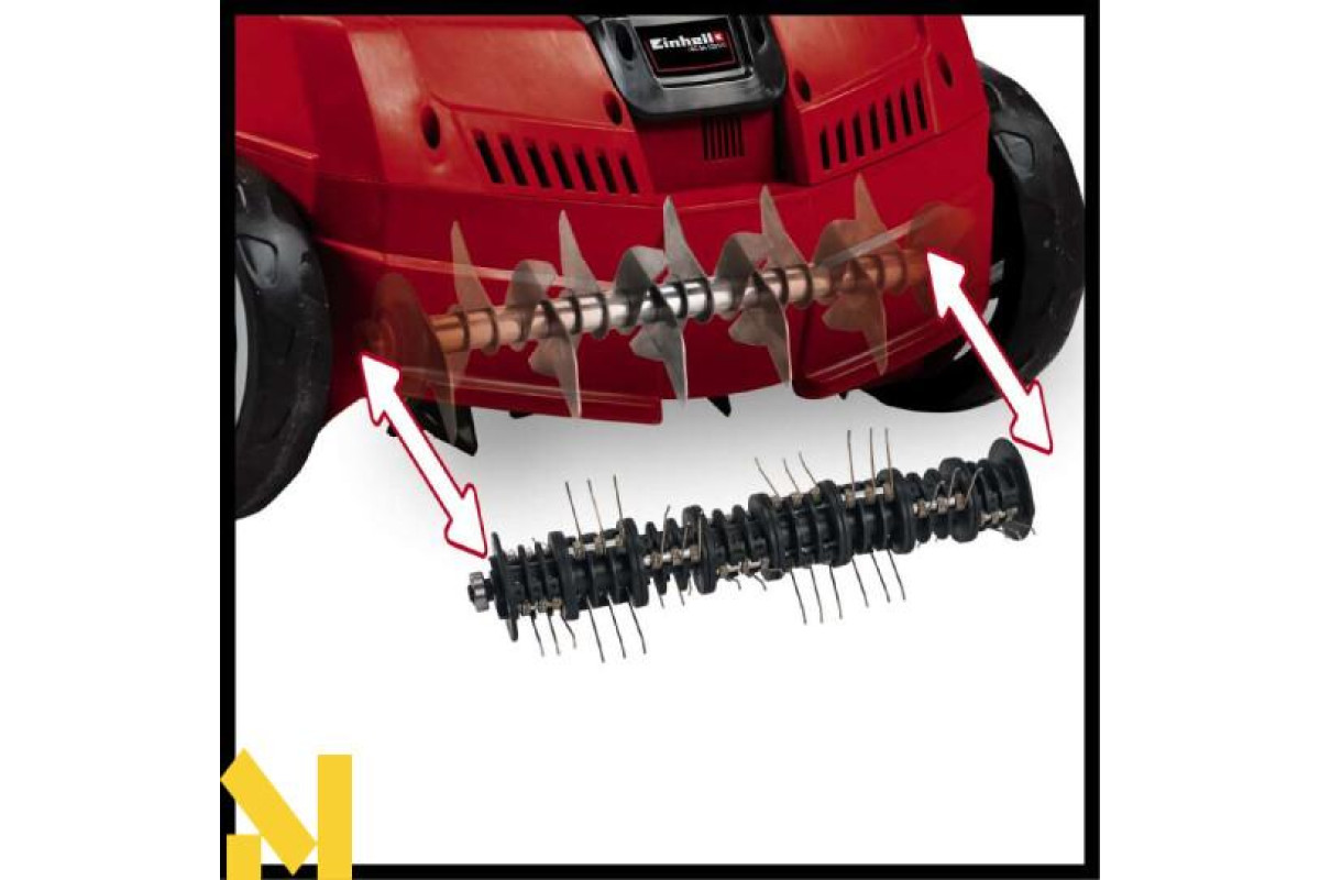 Електричний скарифікатор Einhell GC-ES 1231/1 є потужним і надійним садовим пристроєм, який виявляється незамінним помічником для професійного скарификації ділянок від малих до середніх розмірів для підтримки здорового газону. Будь який газон після 2 - 3 років починає деградувати, з'являються залисини, бур'яни, кущі з трави і залишки відмерлої сухої трави. Щоб повернути такий газон до життя, нам не обійтися без скарифікатора (вертікутера, аератора). Cкаріфікатор електричний Einhell GC-ES 1231/1 своїми 8 ножами вичісує стару траву і бур'яни на рівнях без занурення в грунт, а при зануренні в грунт підрізає живі коріння трави, що сприяє більш рівномірному і густому розростанню газону, а також руйнування нових горбків, тим самим розпушує грунт для оптимального проникнення повітря і вологи і сприяє засвоєнню грунтом поживних речовин, що дає Вашому газону можливість «дихати». Для цієї мети потужний двигун потужністю 1200 Вт забезпечує сильний крутний момент для безперервної обробки з послідовно хорошими результатами. Завдяки регулюванню робочої глибини в 3-рівня, скарифікатор може бути добре пристосований до вимог грунту і рослинності. Додатковий вал встановлений на шарикопідшипниках для аерації забезпечує професійну аерацію грунту за допомогою 42 кігтів. Додаткове паркувальне положення захищає ножі. Для полегшення роботи в складних умовах і зменшення навантаження на газон аератор оснащений великими колесами. Пристрій має міцний корпус з високоякісного удароміцного пластика. Завдяки складаний ручці скарифікатор електричний Einhell GC-ES 1231/1 займає менше місця при зберіганні. Рекомендується для газонів площею до 300 м².