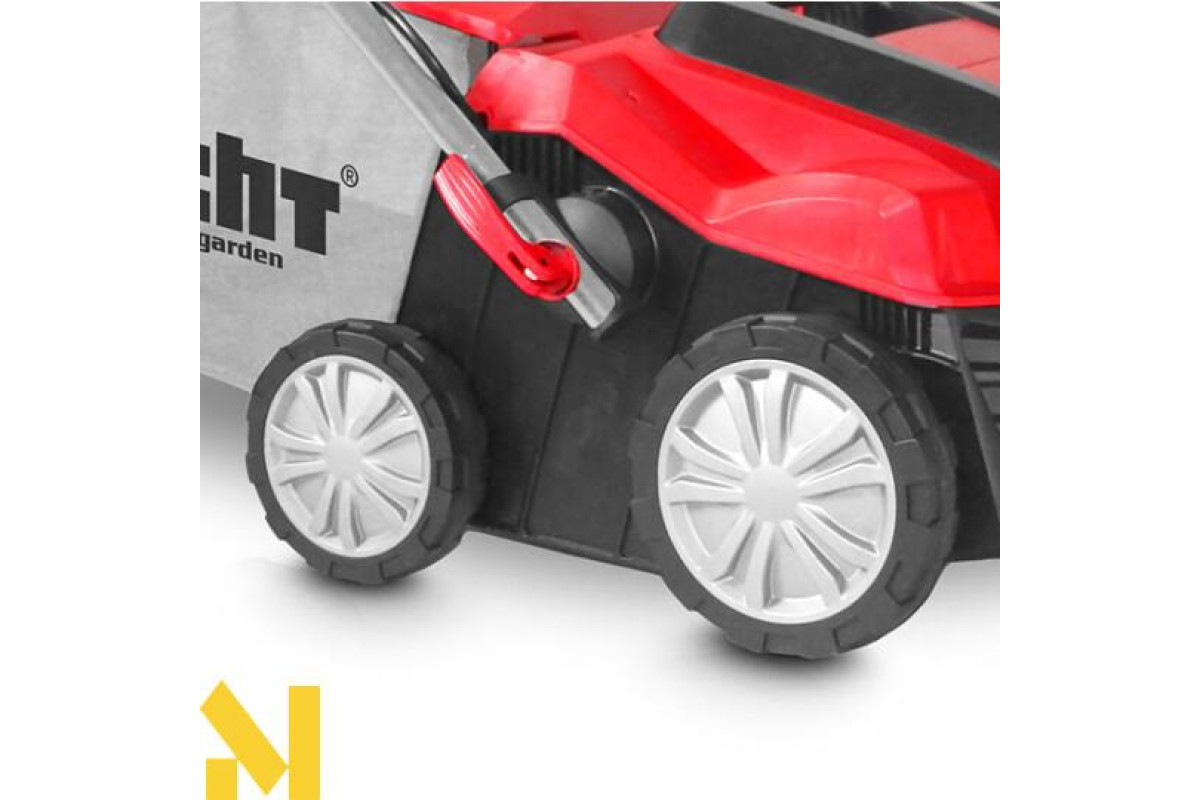 - Спеціально розроблені колеса для хорошого зчеплення з газоном