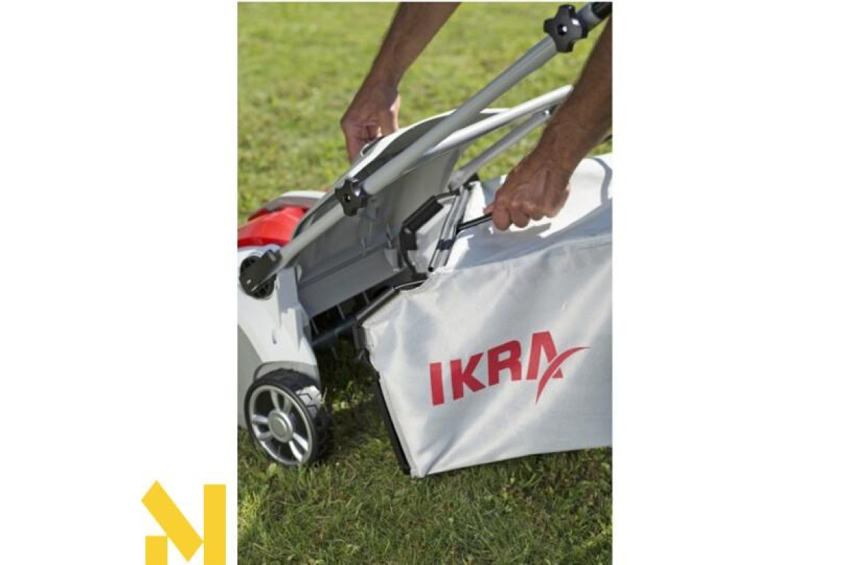Передні колеса трохи більше в діаметрі, ніж задні (140/160), вони добре тримають зчеплення з поверхнею. Висока маневреність аератора Ikra Mogatec IEVL1738 знадобиться для роботи на ділянці з великою кількістю перешкод. Широкі протектори НЕ підминають траву і не шкодять їй.