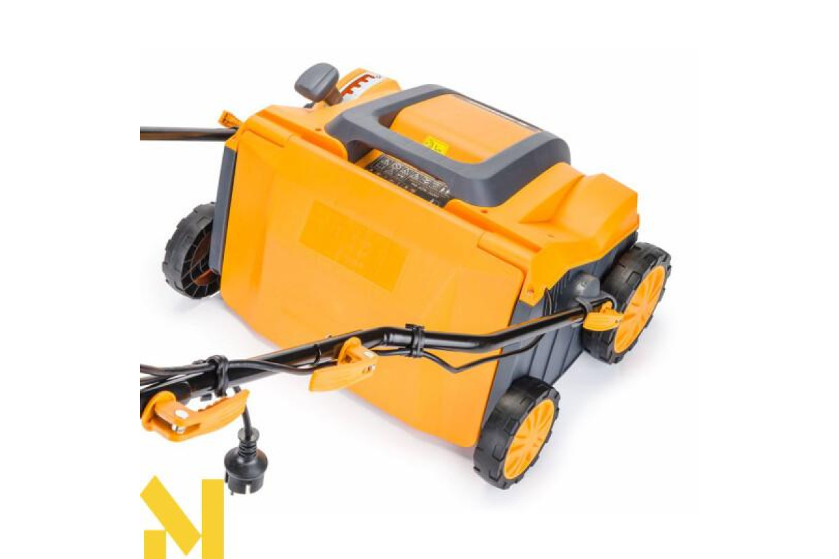 Оснащений великими задніми колесами (180 мм) і меншими передніми (100 мм), аератор легко маневрує, що робить роботу з ним комфортною та ефективною. Крім того, невелика вага нетто (12,8 кг) дозволяє легко транспортувати та зберігати пристрій.
