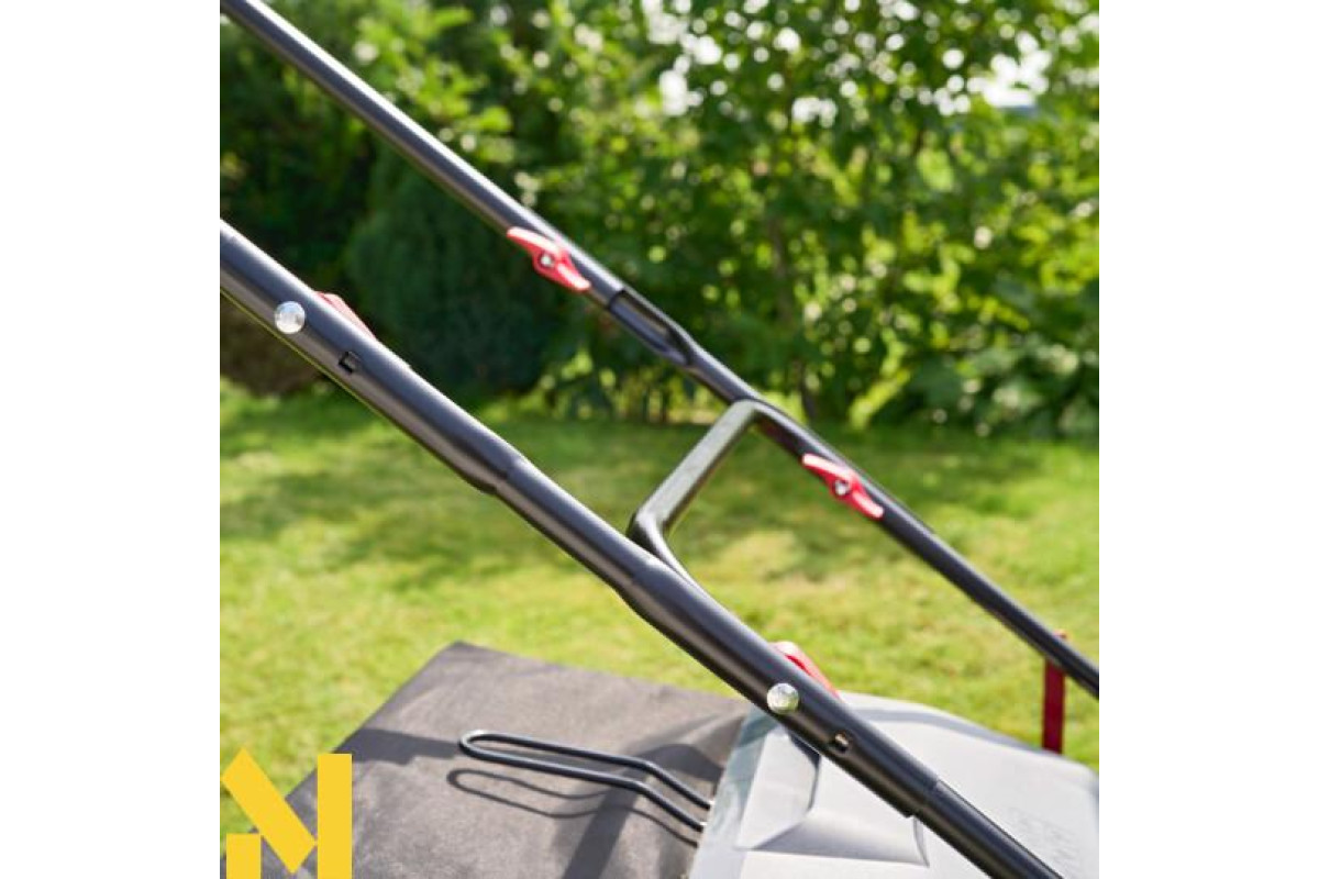 Висоту ручки можна легко відрегулювати відповідно до індивідуальних потреб, що дозволяє ергономічну та менш втомливу роботу. Завдяки функції 3в1 пристрій дозволяє вертикуляцію, аерацію та збирання.