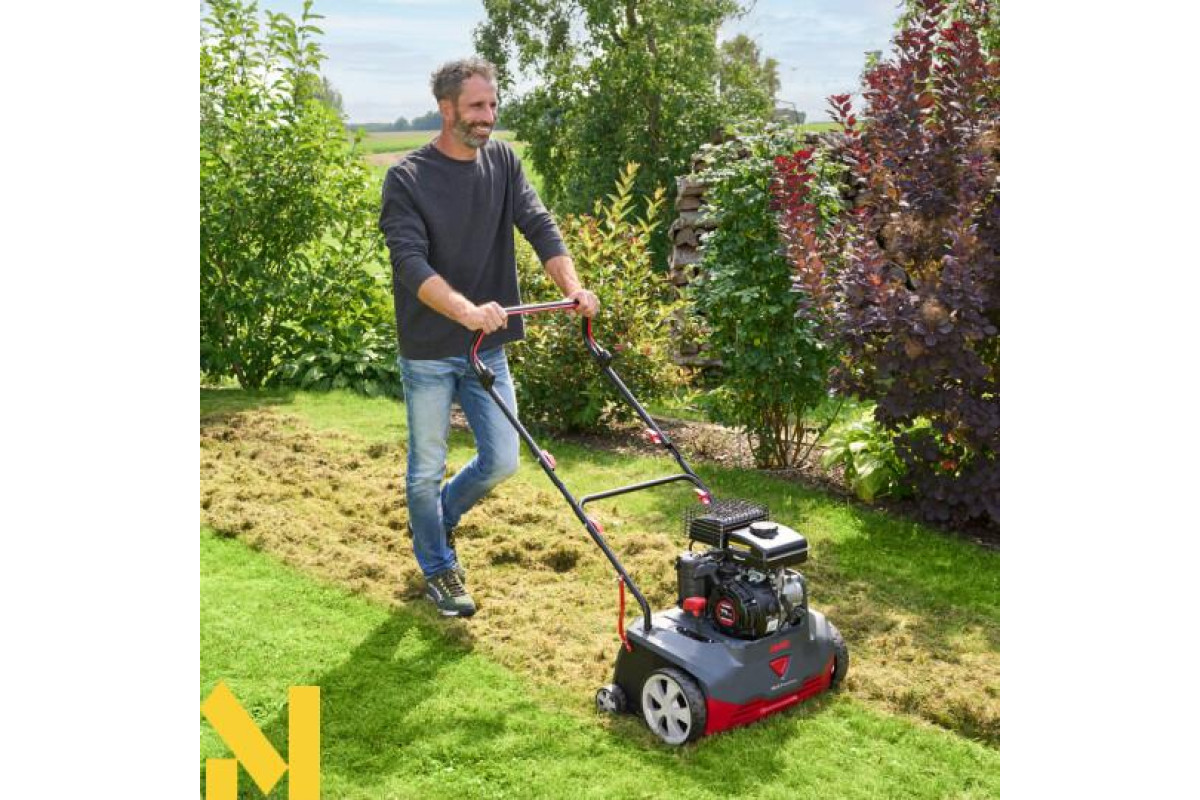 Завдяки робочій ширині 38 см та компактній конструкції вертикулятор гарантує швидкий і комфортний темп роботи, навіть на великих газонах.