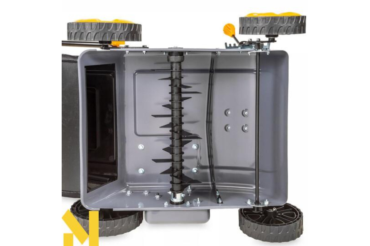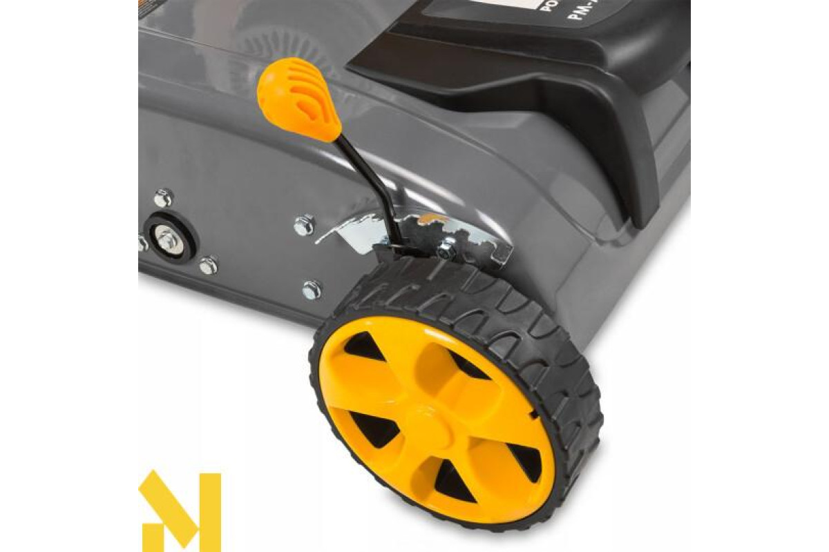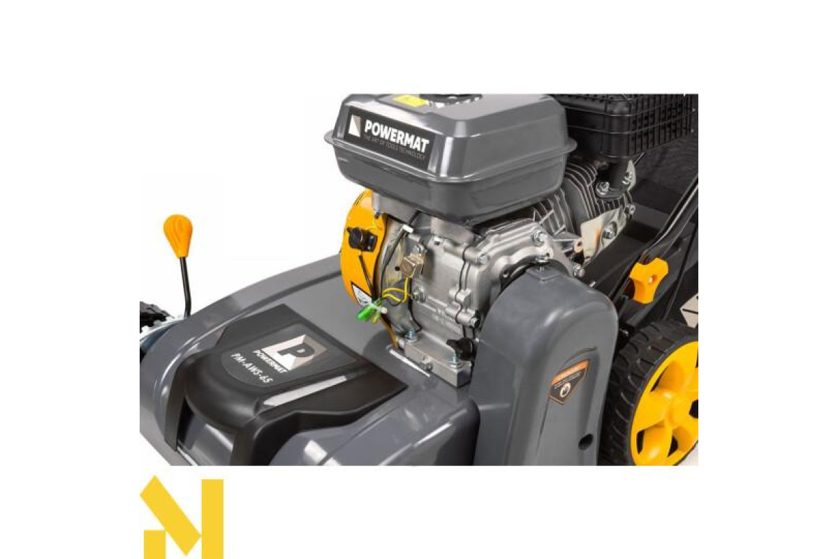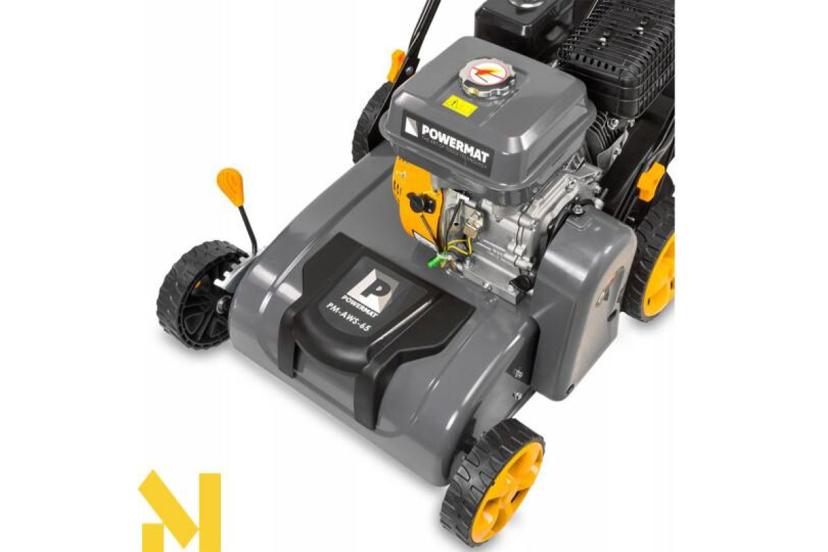 Аератор-вертикулятор Powermat PM-AWS-65 працює від двигуна внутрішнього згоряння потужністю 6,5 к.с., що забезпечує достатню продуктивність роботи.