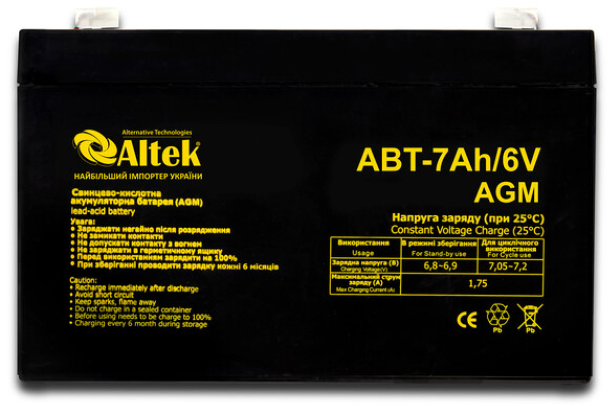 - Напруга акумулятора6 В