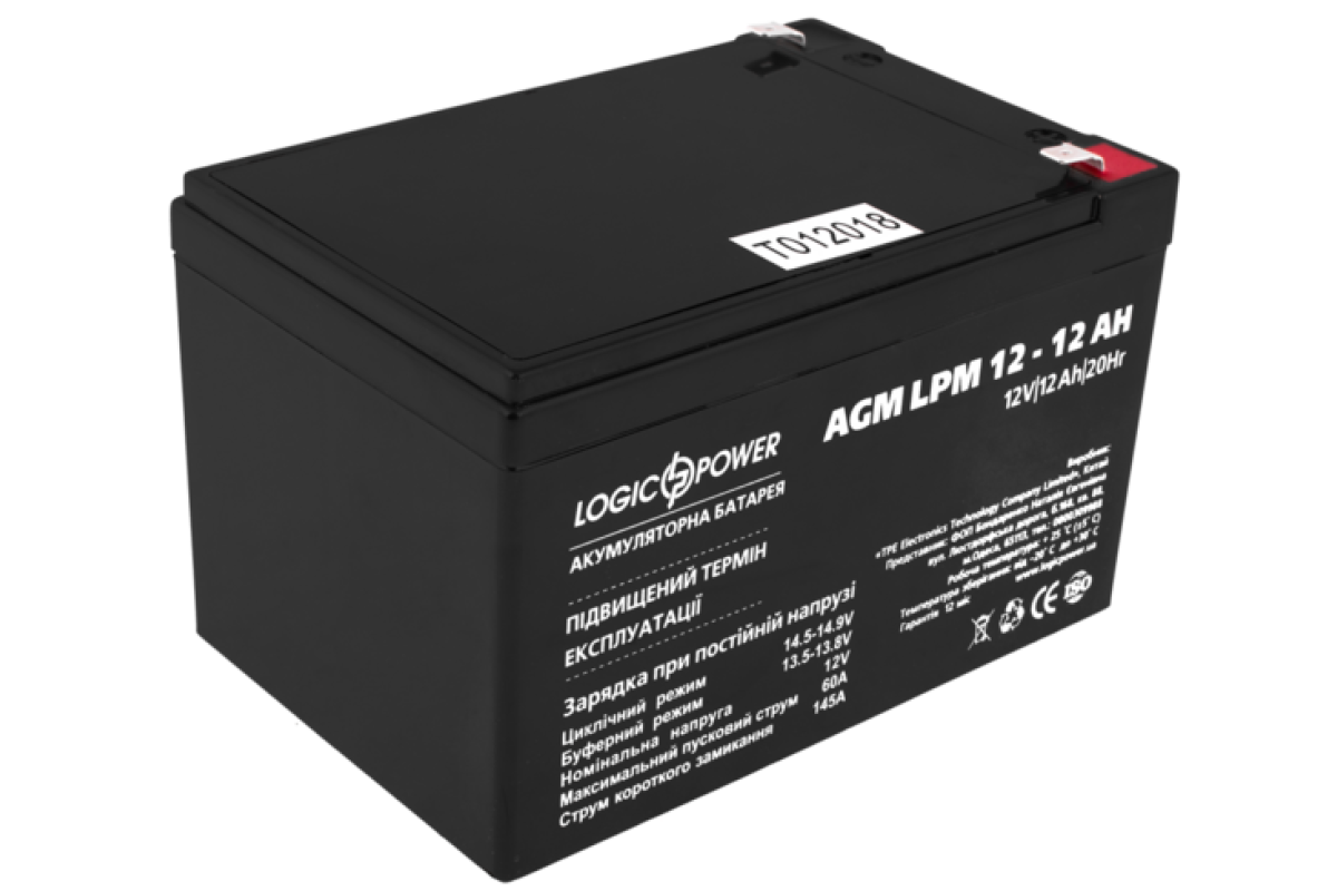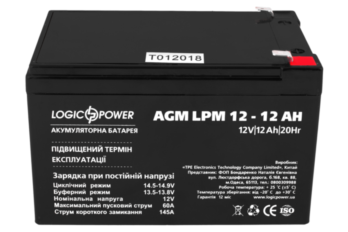 - Ємність аккумулятору12 Аг