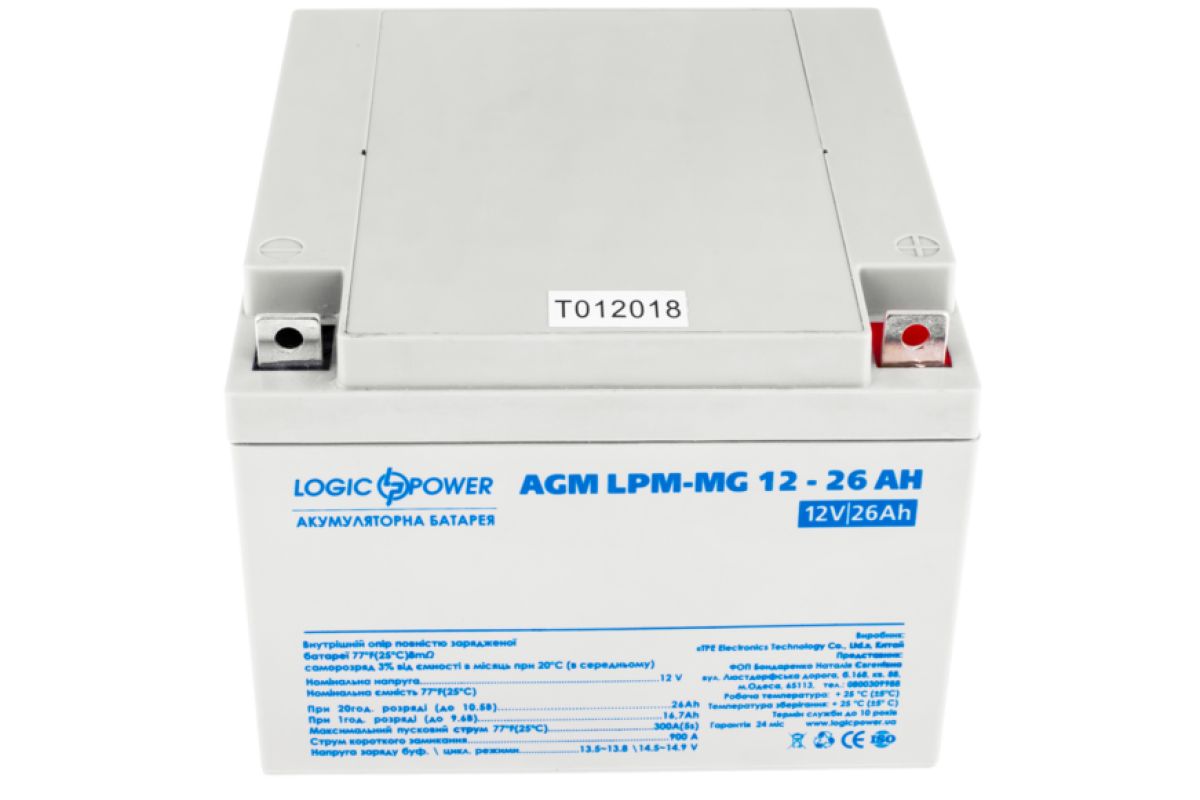 - Ємність аккумулятору26 Аг