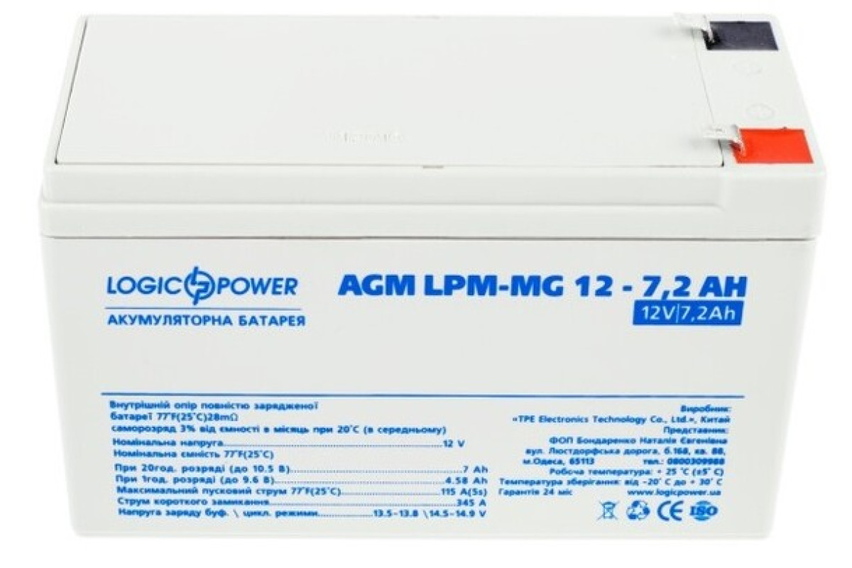 - Ємність аккумулятору7.2 Аг