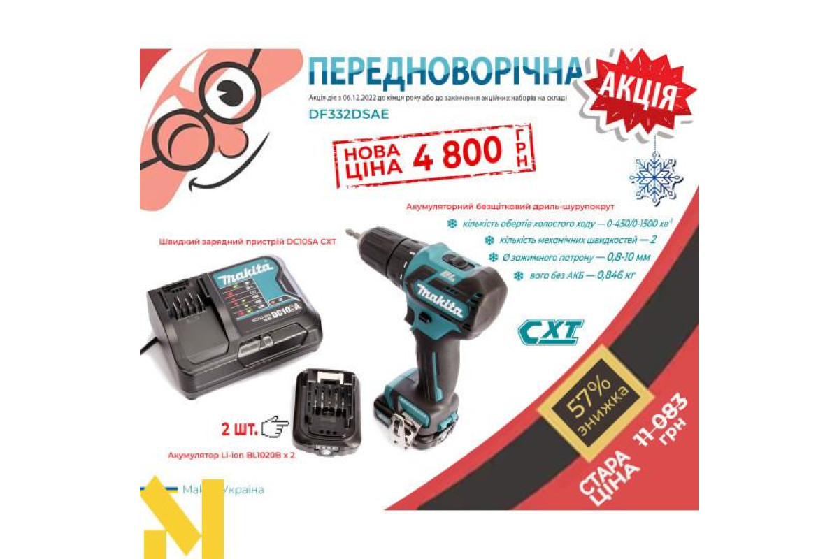 Акумуляторна дриль-шуруповерт Makita DF332DSAE - це функціональний і потужний мобільний інструмент для свердління отворів в різних матеріалах і роботи з кріпильними елементами. Джерелом живлення служить літій-іонний акумулятор. Досить легка і компактна модель, дозволяє проводити роботи на витягнутій руці. Ергономічна рукоятка забезпечує надійний хват і виключає можливість вислизання. Ваші пальці не втомляться навіть після тривалої роботи з інструментом.