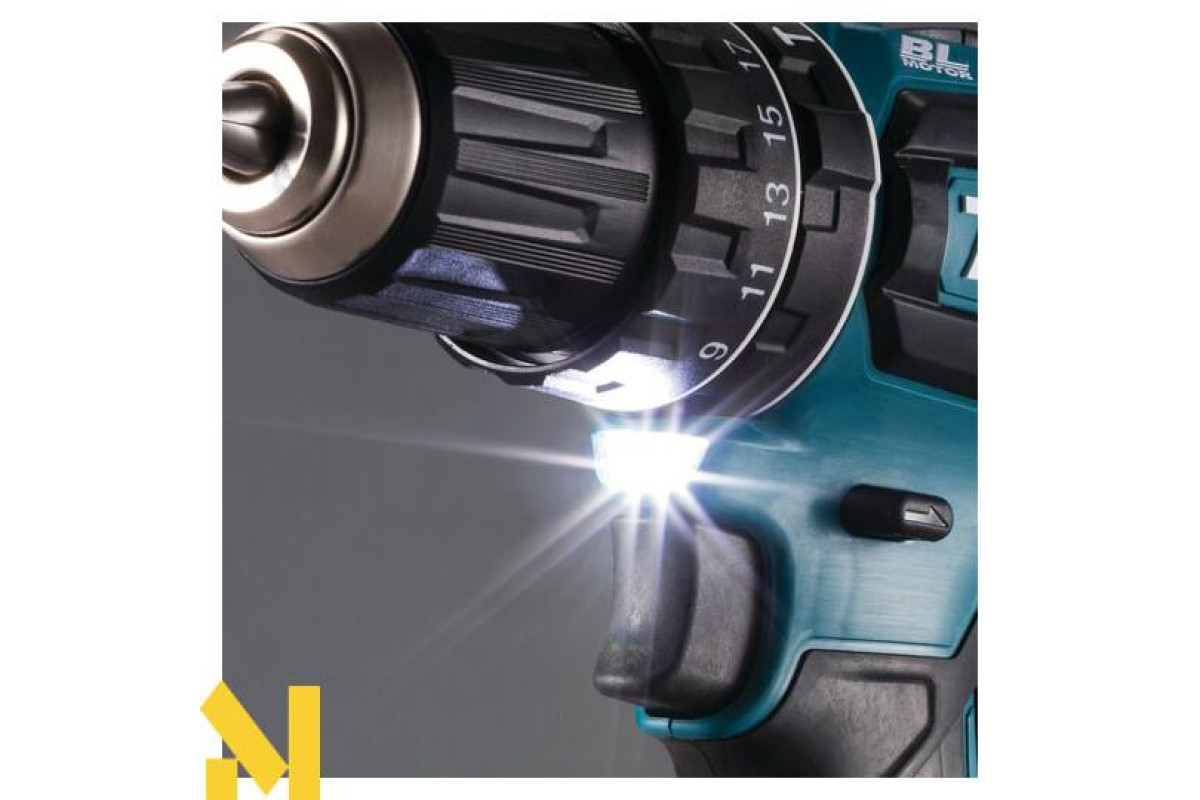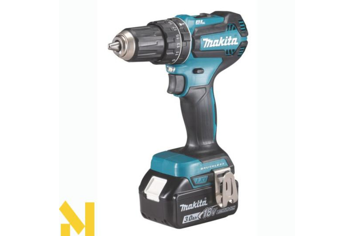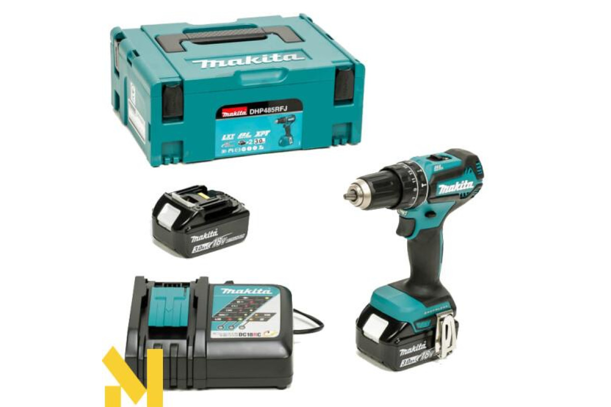 Ударний дриль-шуруповерт Makita DHP485RFJ дозволяє затягнути і витягнути кріплення, просвердлити отвір в металах, дереві і цеглі. Високий рівень продуктивності забезпечує безщітковий двигун. Він не вимагає сервісного обслуговування, має тривалий термін експлуатації. Працездатність забезпечує літій-іонний акумулятор 18 В серії LXT. Такий тип акумуляторів захищений від саморозряду, не має ефекту пам'яті. Можна зарядити при будь-якому рівні залишкового заряду. Дві робочі швидкості дозволяють працювати з м'якими і твердими матеріалами. На першій передачі здійснює до 500 об/хв. На другий робить до 1900 об/хв. Кількість ударів на першій швидкості до 7500 за хвилину, на другий до 28500 уд/хв. Максимальний крутний момент 50 Нм. Крутний момент має 21 щабель регулювання. Швидкозатискний патрон дозволяє легко міняти оснастку. Можна зафіксувати приналежність з діаметром хвостовика від 1,5 до 13 мм. Дозволяє зробити отвір в металі 13 мм, в дереві 38 мм, в бетоні 13 мм. Додатково освітить зону роботи інтегрований світлодіод. Рукоятка з гумовими накладками комфортно лежить в руці, не ковзає в процесі роботи.