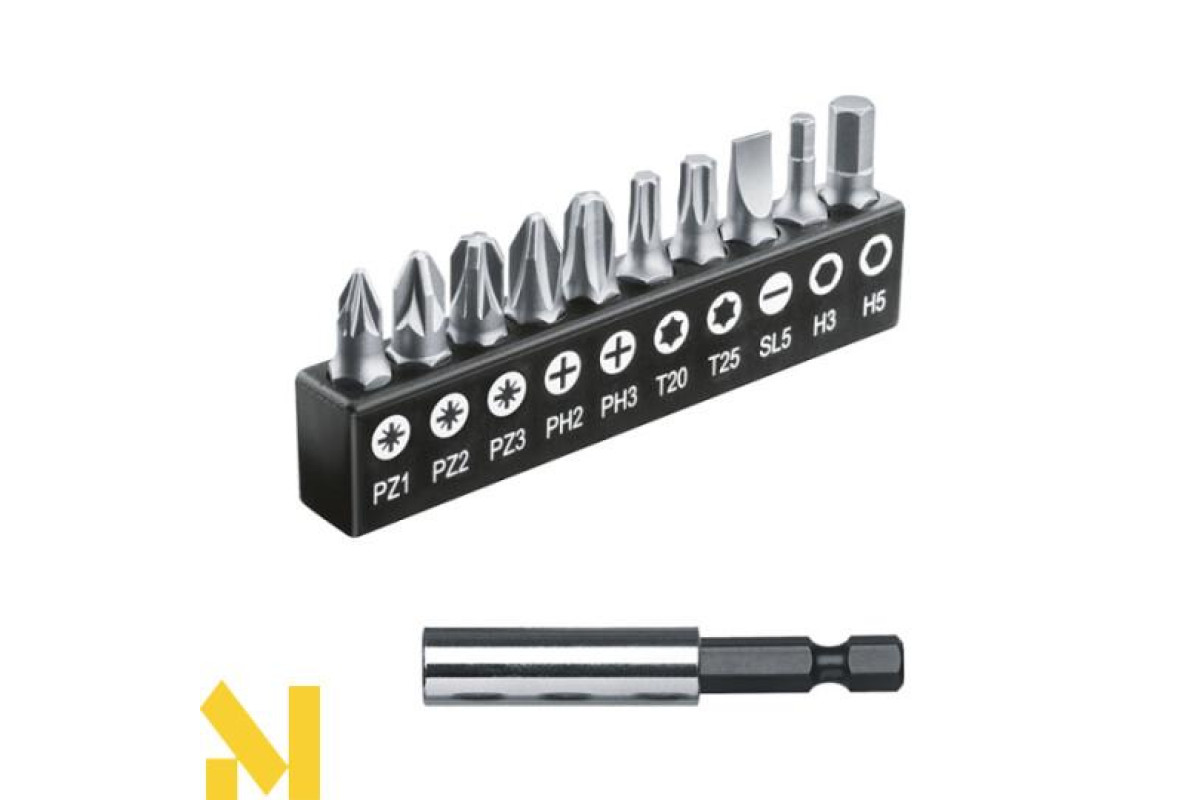 насадки - 10 шт (PZ1, PZ2, PZ3, PH2, PH3, T20, T25, SL5, H3, H5);