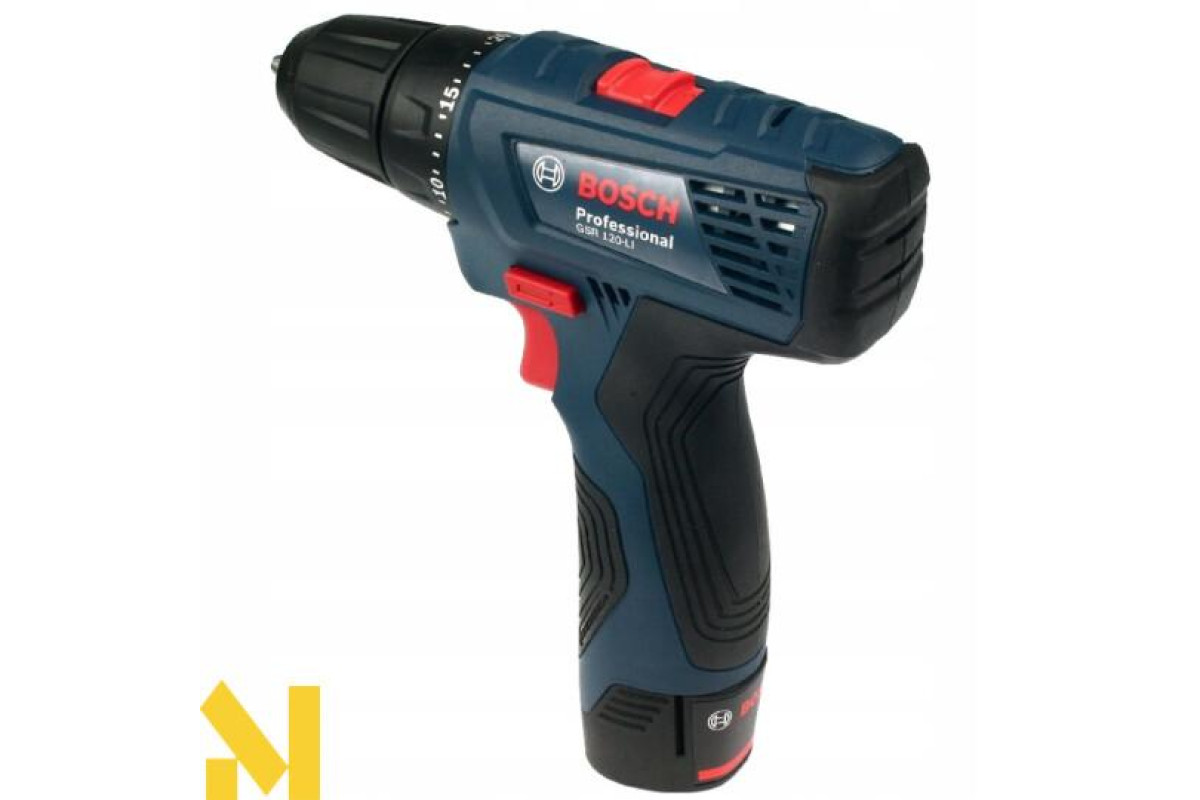 Акумуляторна дриль-шуруповерт Bosch GSR 120-LI має ключовий патрон, що забезпечує просту зміну оснащення. Функція реверсу допомагає швидко змінювати напрямок обертання біти і легко витягувати свердло з отвору. На інструменті можна виставити один з 20 можливих варіантів крутного моменту або режим свердління, в залежності від виконуваного завдання. Передбачена підсвічування робочої зони для зручної роботи в місцях з поганим освітленням.