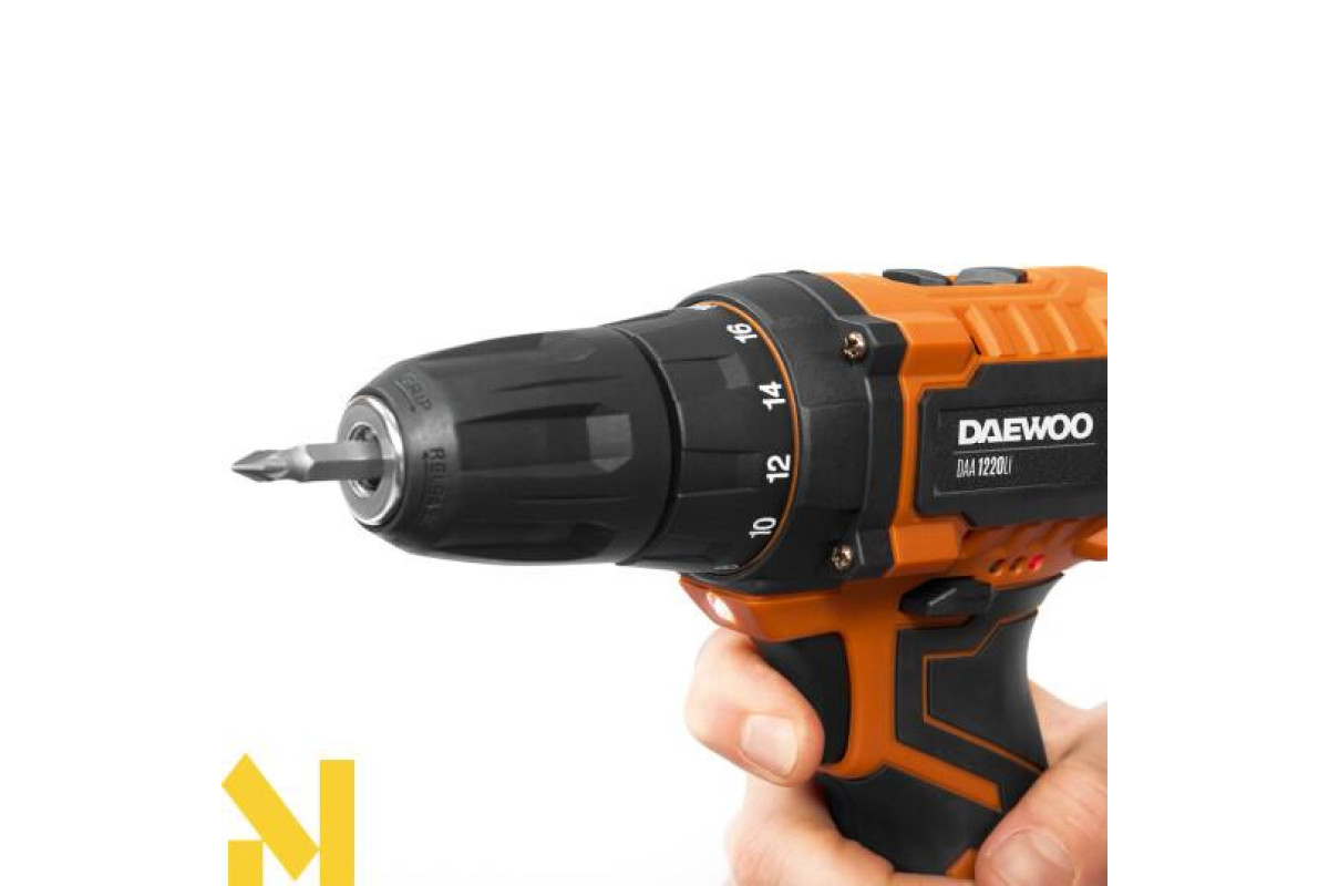 Daewoo DAA 1220Li - надійний і практичний акумуляторний шуруповерт. Він призначений для загвинчування і викручування шурупів, свердління отворів в металі, кераміці, деревині, полімерних матеріалах.