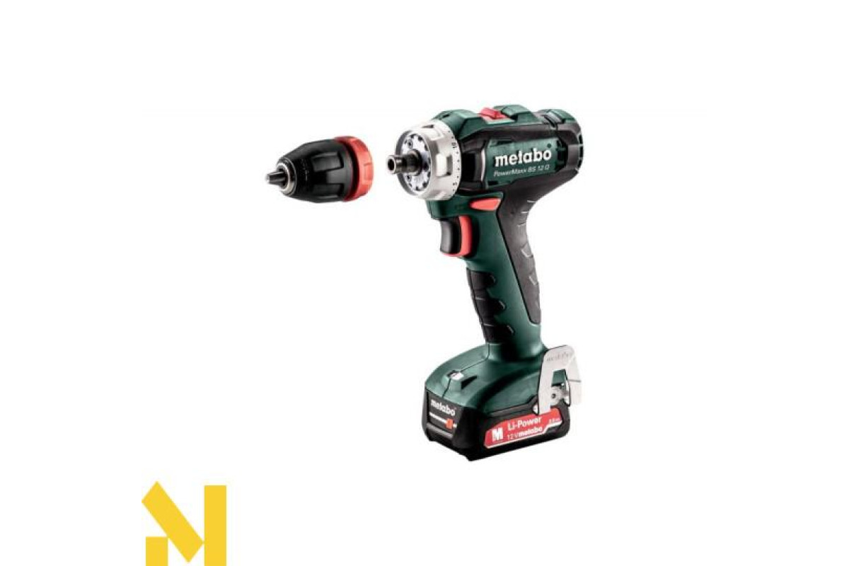 Акумуляторна дриль-шуруповерт Metabo PowerMaxx BS 12 Q це один з яскравих представників лінійки компактних шуруповертiв Metabo PowerMaxx. Дана модель має 12 В акумуляторні блоки і швидкозмінний патрон Quick, який робить його універсальним і значно розширює область його застосування.