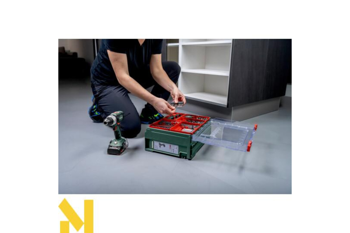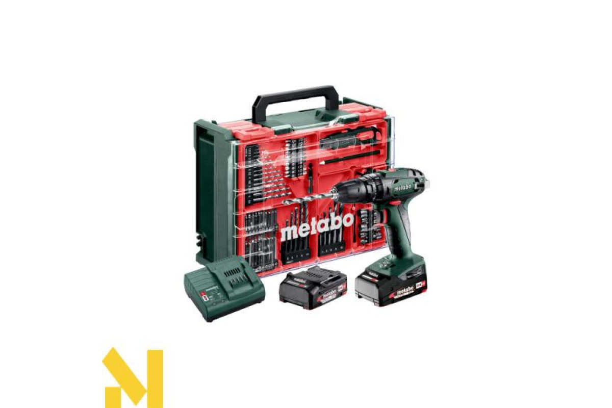 Акумуляторний дриль-шуруповерт ударний Metabo SB 18 SB 18 Mobile Workshop покращена комплектація стандартного Metabo SB 18, до якої входить набір самого необхідного оснащення. Вся оснастка зафіксована і має своє місце, завдяки чому не бовтатиметься в кейсі та завжди буде під рукою.