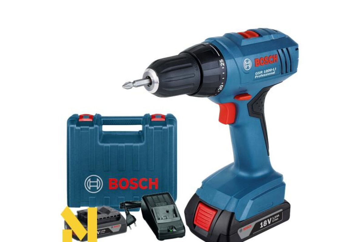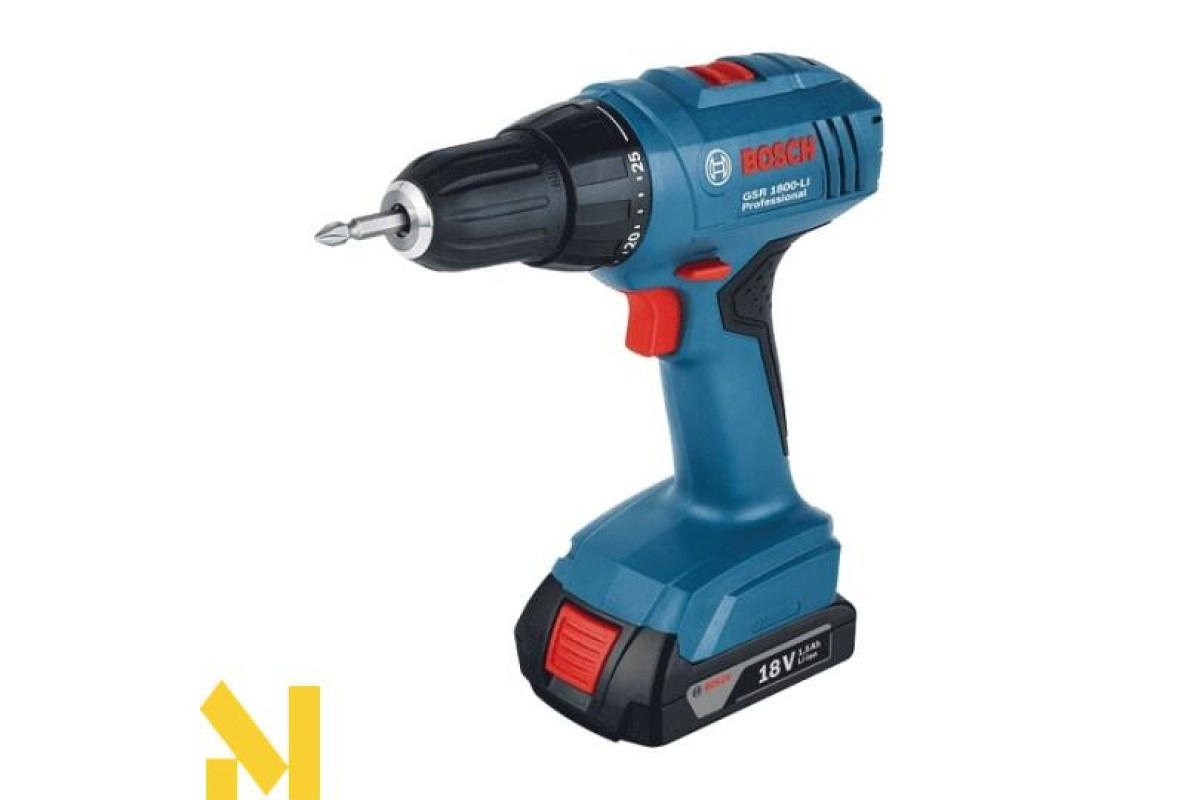 Дриль-шуруповерт Bosch GSR 1800 –Li – має великий крутний момент 34 Нм, що позитивно впливає на його продуктивність. Цю модель сконструювали для країн СНД, враховуючи умови ринку і купівельну спроможність. Електроінструмент допоможе у роботі монтажникам меблів, будівельникам, слюсарям та реставраторам. Завдяки двохшвидкісному редуктору можна регулювати крутний момент підлаштовуючи його до тієї чи іншої поверхні. Він здатен працювати із шурупами завтовшки до 8 мм. Крім цього пристрій просвердлює отвори у деревині, металі та пластику. Працює техніка від акумулятора ємністю 1,5 Аh, на зарядку якого затрачається всього 70 хвилин. Оскільки в комплекті дві батареї, то робота може тривати довго і без перерви. Також важливо знати, що акумулятори можна заряджати без їх повної розрядки, бо у них відсутній ефект пам`яті. При цьому під час роботи не відбувається втрата їх потужності. Крім того варто зауважити, що навіть не використовуючи інструмент тривалий час, батареї не розряджаються. Ця модель має надійний захист від перевантажень та перегріву акумуляторів Electronic Cell Protection ( ECP ). Пристрій оснащений швидкозатискним патроном Auto- Lock для біт і свердел на 10 мм з високим зусиллям затискання. А ще наявна муфта регулювання крутного моменту 25+1. Це дозволяє точно підстроїтися під час загвинчування кріплень будь-якого розміру.