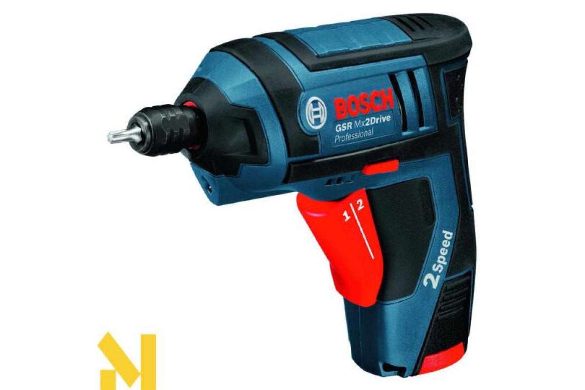 Акумуляторний шуруповерт Bosch GSR Mx2Drive рекомендований для монтажу невеликих матеріалів та закручування шурупів. Характеризується інструмент двошвидкісним редуктором, який дає можливість перемикати передачі не вимикаючись. Працюючи на першій швидкості він видає 150 об/хв, яких вистачає для щільного загвинчування. На другій передачі працюють для більш швидкого виконання роботи – 0-580 об/хв. Техніка оснащена універсальним тримачем насадок 1/4" із запобіжником. Такий тип підходить до стандартних свердел і викруток.