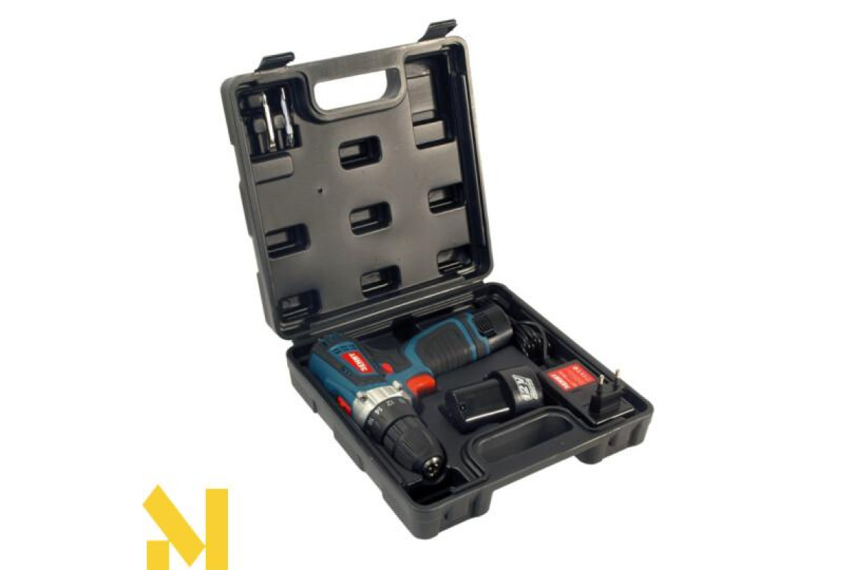 Інструмент йде у комплекті із зарядним пристроєм для АКБ та пластиковим кейсом для зручності транспортування і зберігання.