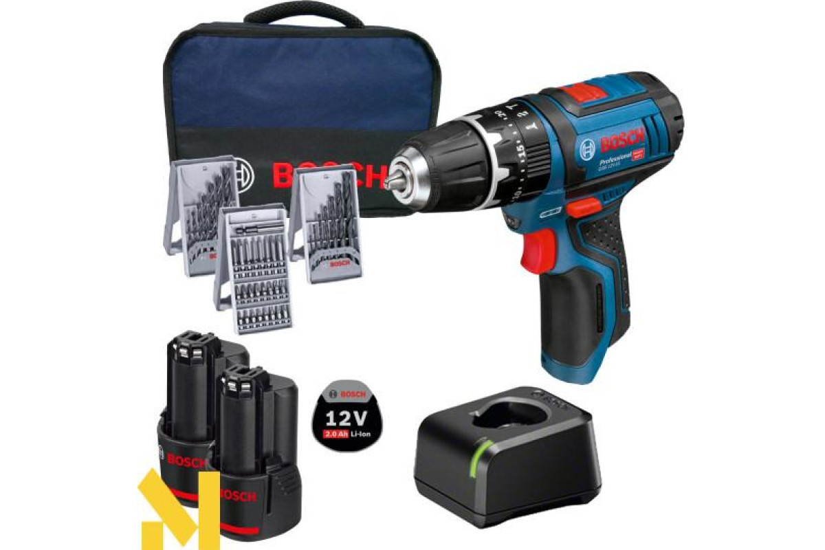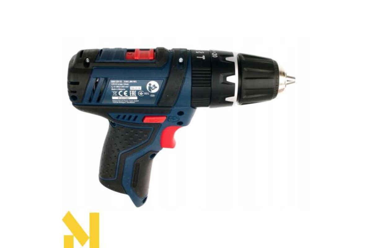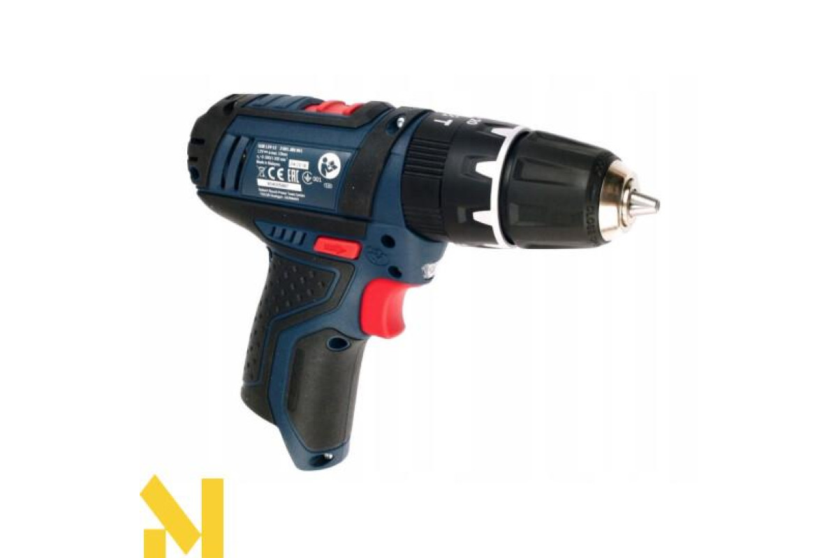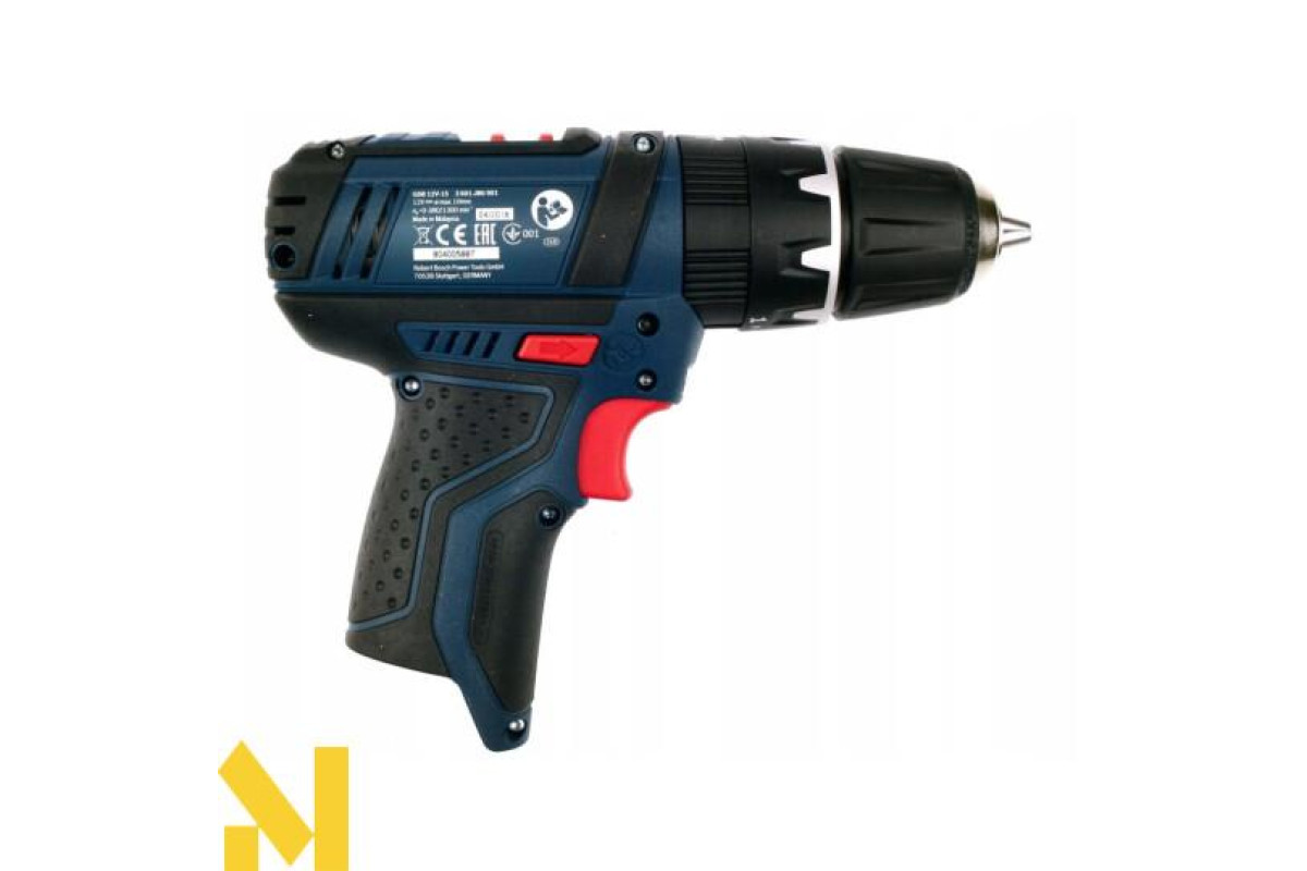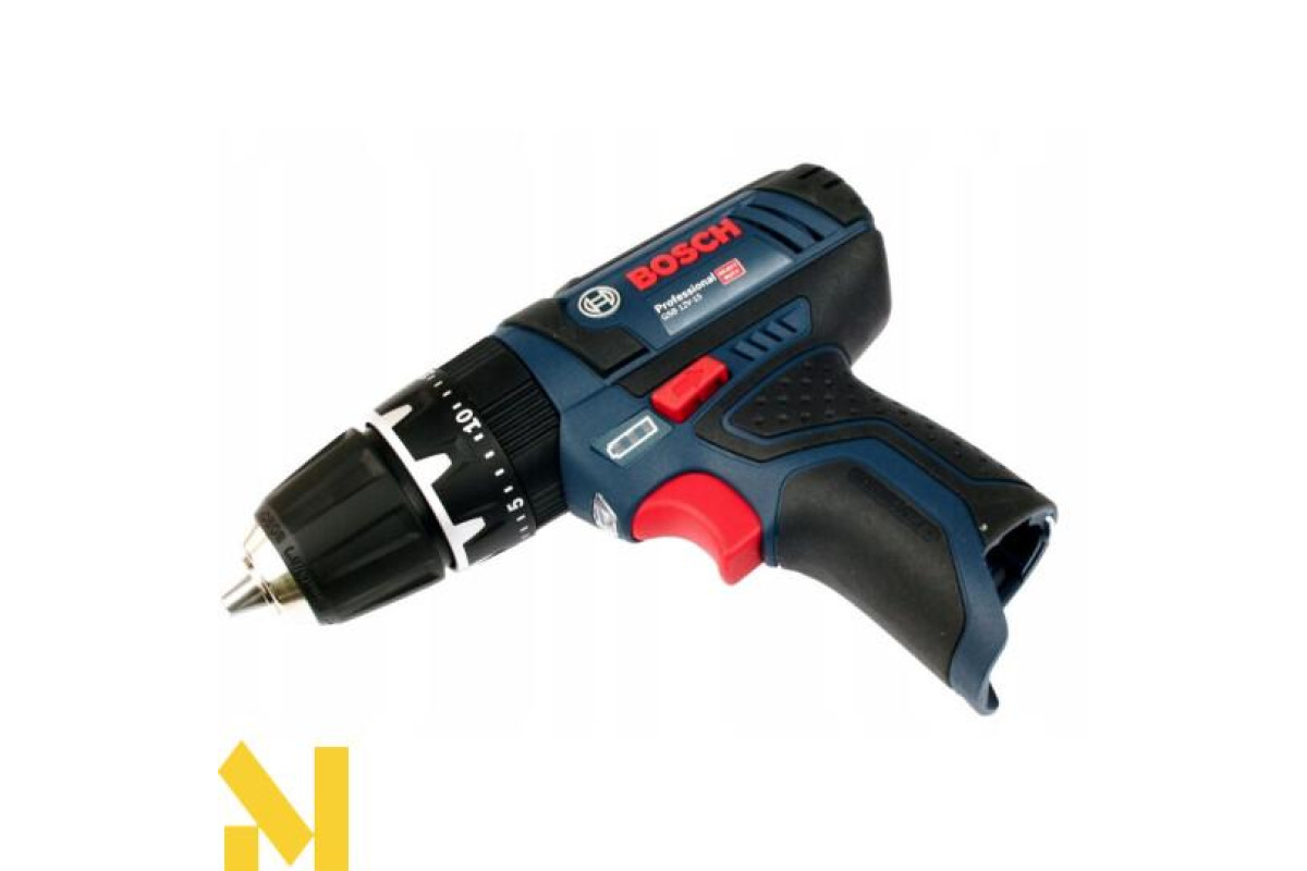 Бездротова дриль-шуруповерт Bosch GSB 12V-15 ударної дії (19500 уд/хв) виконує отвори в цеглі та камені (діаметром до 10 мм), в деревині (19 мм), металі (10 мм), кераміці. Закручує і відкручує кріплення (7 мм). Дві швидкості (0-380 об/хв і 0-1300 об/хв). Настроюється 20 ступенями момент затяжки 30 Нм / 13 Нм. Реверс. Швидкозатискний патрон Auto-Lock 10 мм. Шпиндель ½ дюйма. У дію приводиться літій-іонним 12 або 10,8 В акумулятором серії GBA 10,8 В.