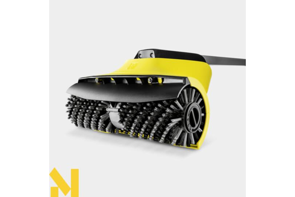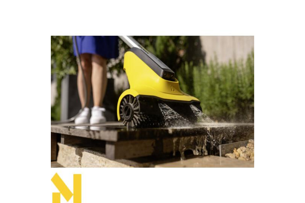 Акумуляторний апарат для чищення терас, оснащений роликовими щітками, що обертаються, і вбудованою системою подачі води, гарантує ефективне і ретельне очищення дерев'яних терас.