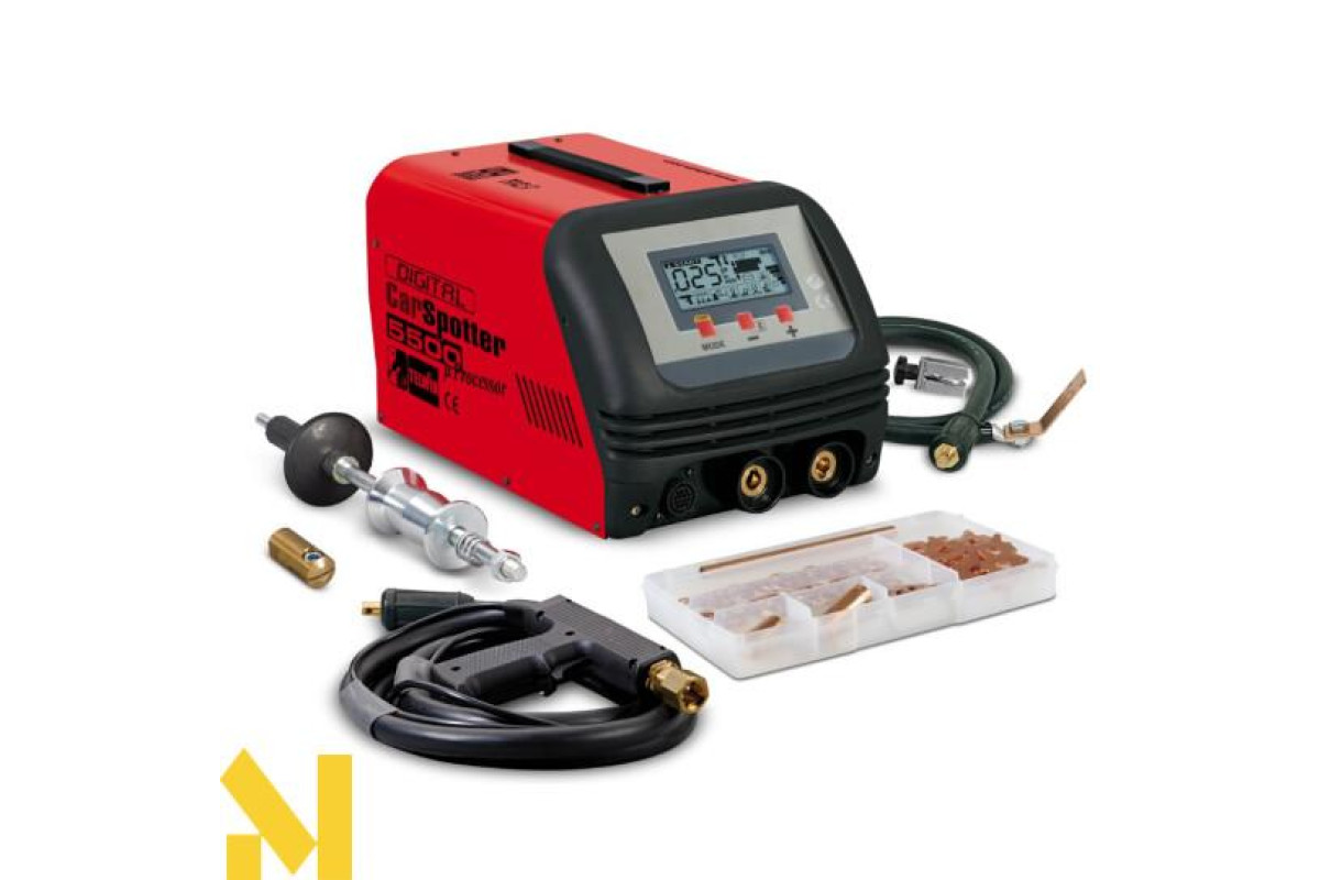 Електронна зварювальний установка з опором (зварювальний машина точкового зварювання), керована за допомогою мікропроцесора, підходить для застосування в авторемонтних майстерень. Багатофункціональна ЖК-дисплей забезпечує автоматичне регулювання параметрів точкового зварювання в залежності від обраного інструменту і товщини листа. Серійно поставляється з комплектом "STUDDER TOUCH" для точкового зварювання гвинтів, шайб, клепок та тягові зірочки, для нагріву листа і висадки.