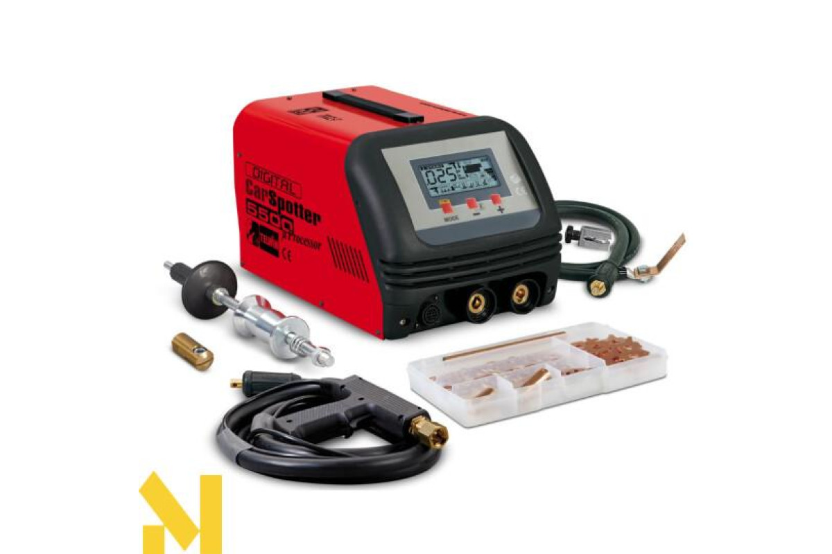 Електронна зварювальний установка з опором (зварювальний машина точкового зварювання), керована за допомогою мікропроцесора, підходить для застосування в авторемонтних майстерень. Багатофункціональна ЖК-дисплей забезпечує автоматичне регулювання параметрів точкового зварювання в залежності від обраного інструменту і товщини листа. Серійно поставляється з комплектом "STUDDER TOUCH" для точкового зварювання гвинтів, шайб, клепок та тягові зірочки, для нагріву листа і висадки.