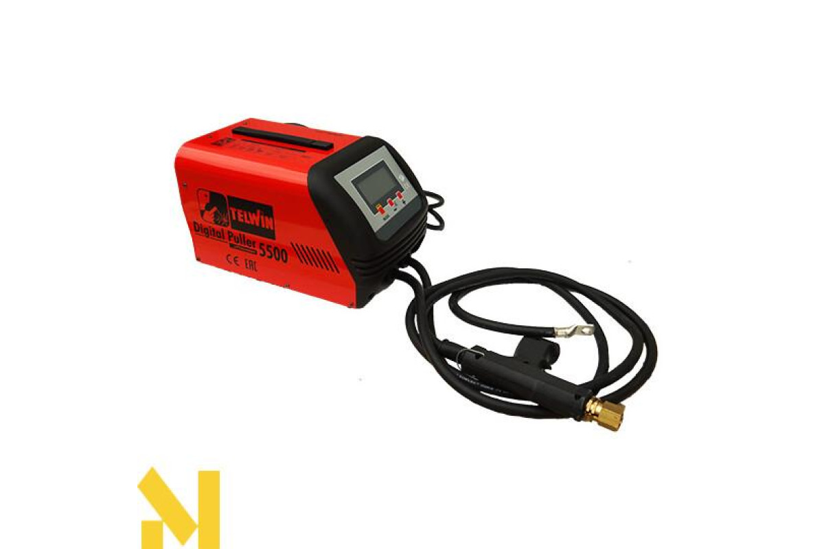 Електронний апарат для зварювання металевих листів, керований мікропроцесором, підходить для застосування в авторемонтних майстерень. Багатофункціональна панель регулювання параметрів точкового зварювання, в залежності від обраного інструменту. У комплектацію включений пістолет, кабель маси з кріпильним комплектом, виймач, шпиндель і тягові зірочки.