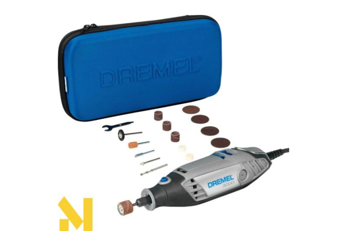 Багатофункціональний інструмент Dremel 3000 — мультимашина для виконання різання, шліфування, полірування, гравіювання та інших завдань. Двигун потужністю 130 Вт живиться від мережі 230 В. Для більшого комфорту при користуванні інструментом був створений інноваційний наконечник EZ Twist, що дозволяє встановлювати насадки без ключа. Цей механізм вбудований прямо в верхній ковпачок. Двигун Dremel йде в компактному ергономічному корпусі і оснащений 5-ступінчастим регулюванням 10000-33000 об/хв.