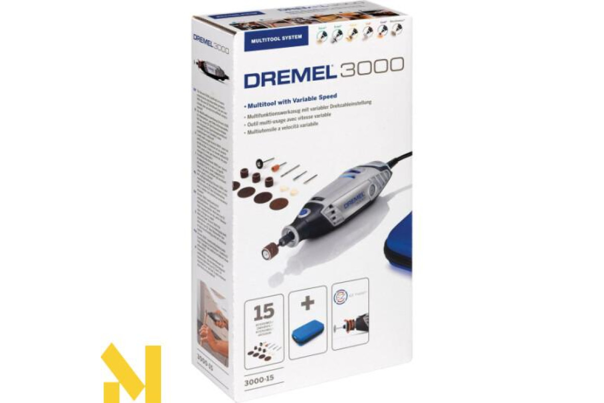 Багатофункціональний Dremel 3000 (3000-15) — точний інструмент, який завдяки використанню різних насадок і приладдя може застосовуватися для виконання різних робіт: відрізання, різьблення, шліфування, гравірування, фрезерування, чищення, полірування.