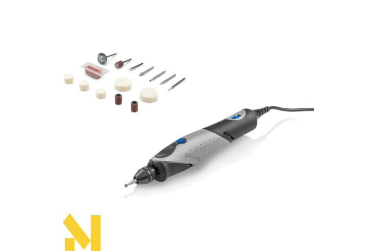 Dremel Stylo+ – невеликий гравер для точних робіт з різними матеріалами. Дозволяє виконувати різання, гравірування, зачистку і шліфування поверхонь. Гравер живиться від мережі. Має плавне регулювання швидкості: