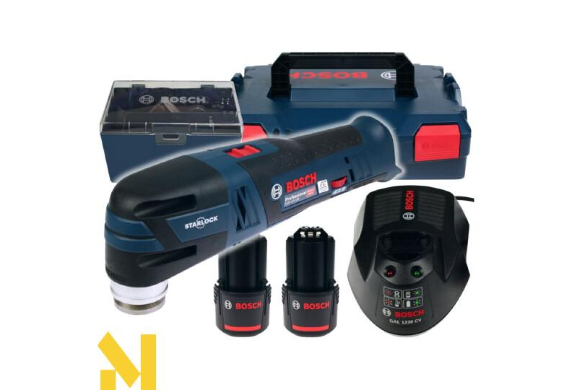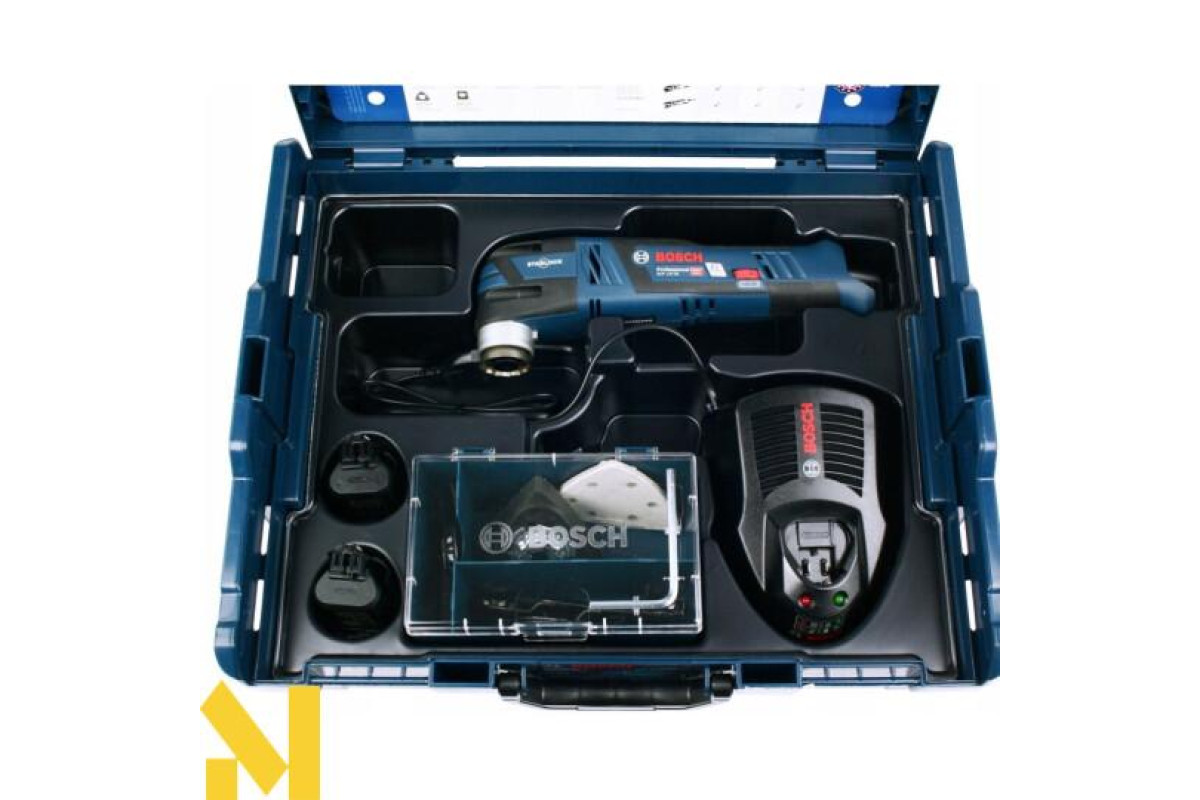 Мультитул Bosch GOP 12V-28 працює на LI-Ion 10,8 або 12 В акумуляторі. Підходять насадки Starlock. Настроюється частота коливань (5000-20000 кол/хв). Кут качання 2,8 градуса. Магнітний тримач. Безщітковий двигун. Поставляється в картонній коробці без елементів живлення і зарядного модуля.